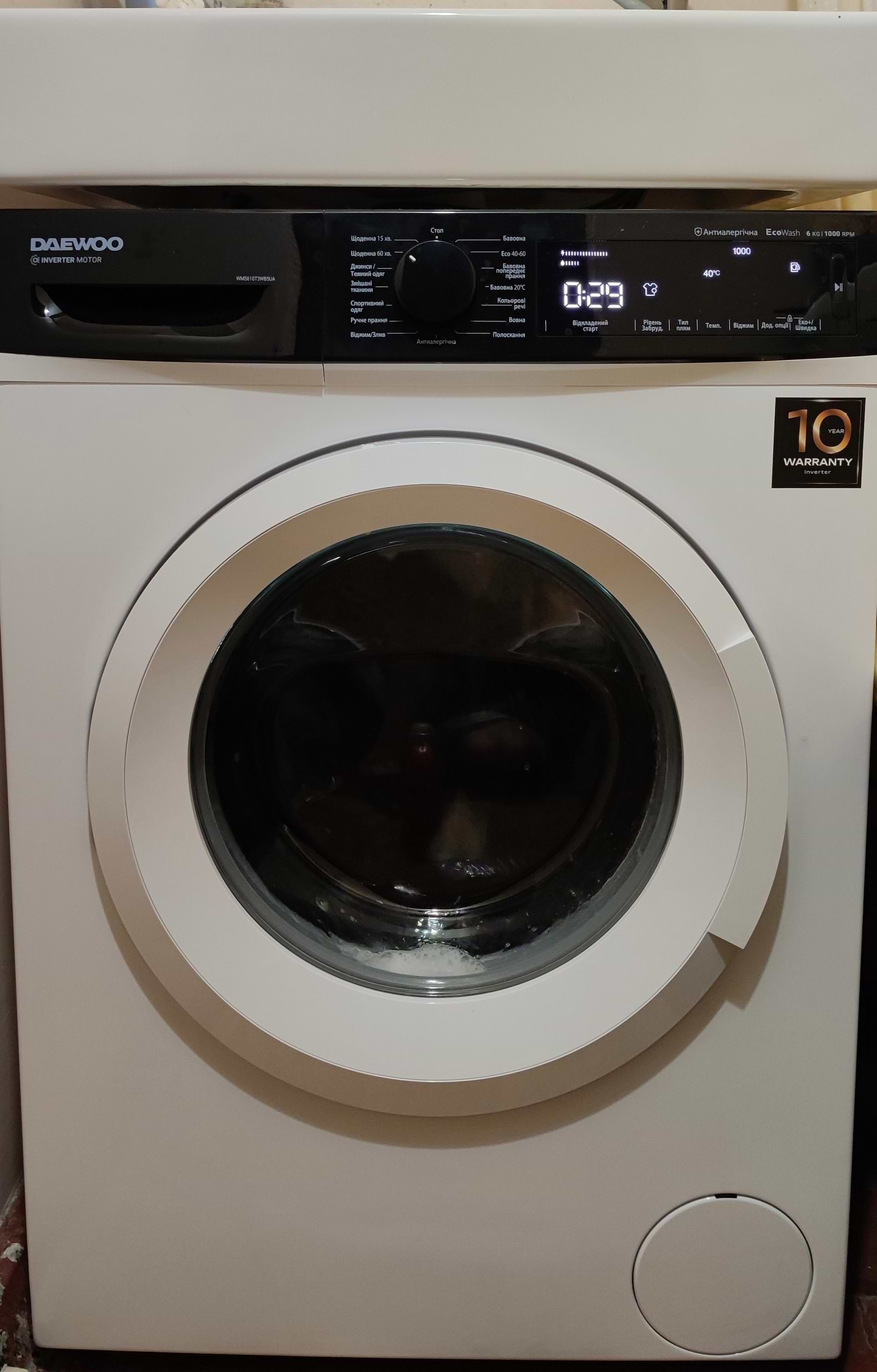 Хоча я щойно встановив машинку і поки не маю можливості поділитися враженнями стосовно її роботи, я можу описати її зовнішній вигляд. Вона виглядає дуже компактно в порівнянні з моєю попередньою моделлю і водночас має додатковий об'єм завантаження на 1 кг, що є великим плюсом! Щодо матеріалів, пластик виглядає непогано - достатньо якісним і цупким, те саме можна сказати про люк та барабан. В цілому перше враження хороше, подивимось, як вона покаже себе у роботі
