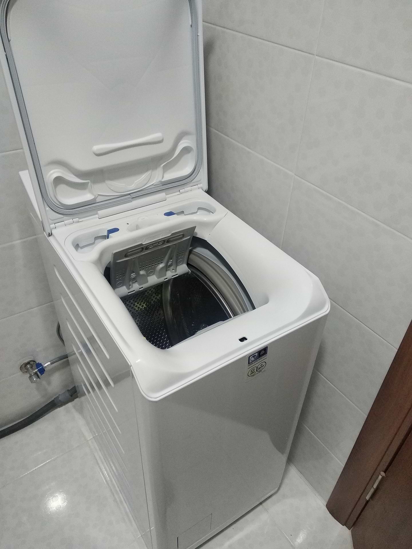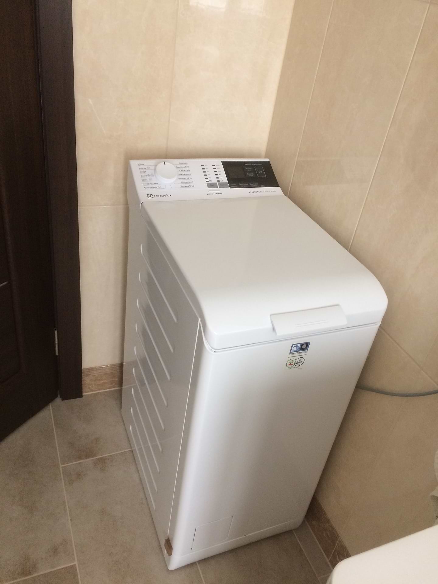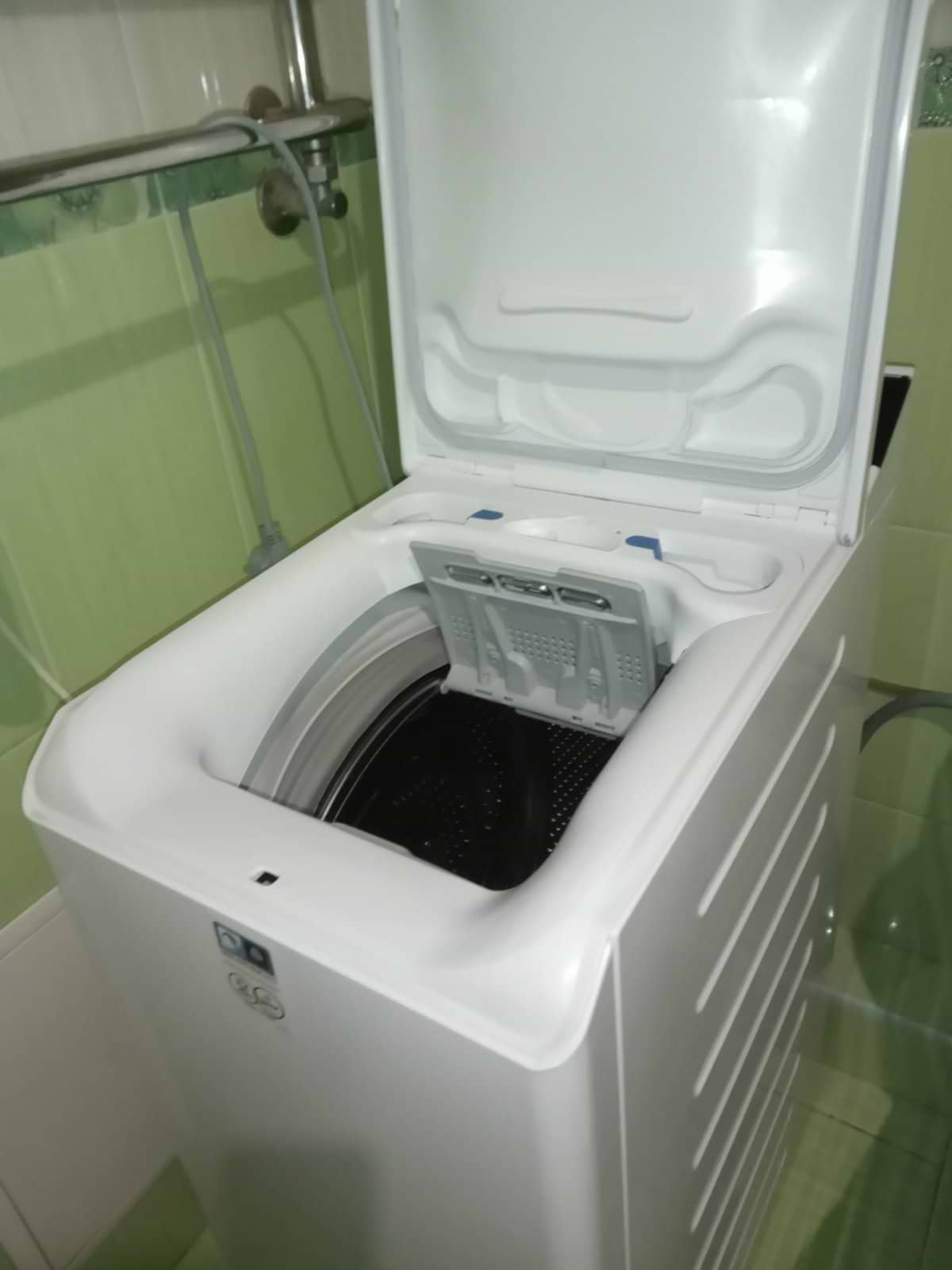 Машинка крутая, тихая ,умная всё понятно и без инструкции без недостатков стирает и отжимает тихо ,есть функция сокращения времени стирки это то что я искала я очень довольна .А ванную комнату вписалась идеально