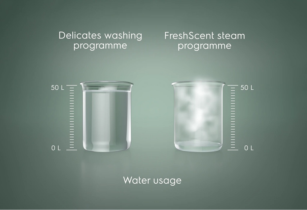 Свойства пара, при воздействии на ткань, являются феноменальными, как для ее визуального состояния, так и в гигиеническом смысле. Проходя через волокна, пар уничтожает любые микроорганизмы, которые могли накапливаться на ней долгое время. Различные летучие вещества, влияющие на запах от одежды, также не в состоянии справиться с паром и полностью устраняются с нее. И в результате вы всегда сможете получать идеально пахнущие, чисты вещи. В Electrolux EW7W368SU применяется также технология FreshScent, помогающая эффективно освежать белье при помощи пара. Это дает возможность сэкономить огромное количество воды и электроэнергии, так как не потребует от вас полноценной стирки, предоставив столь же высокое качество очистки.