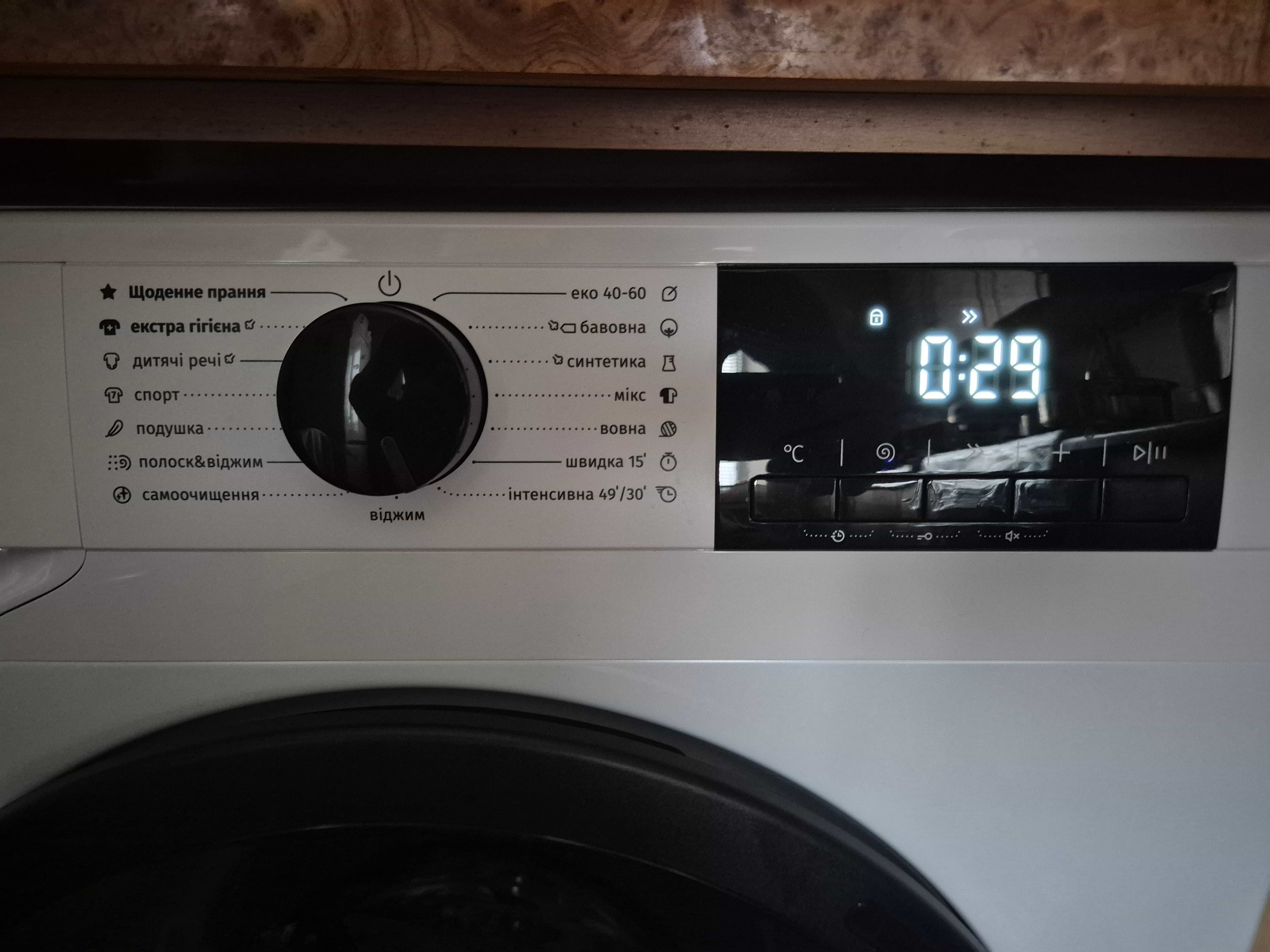 Має великий барабан , зручну панель управління , працює відносно тихо , але якщо барабан завантажений повністю то гучно.