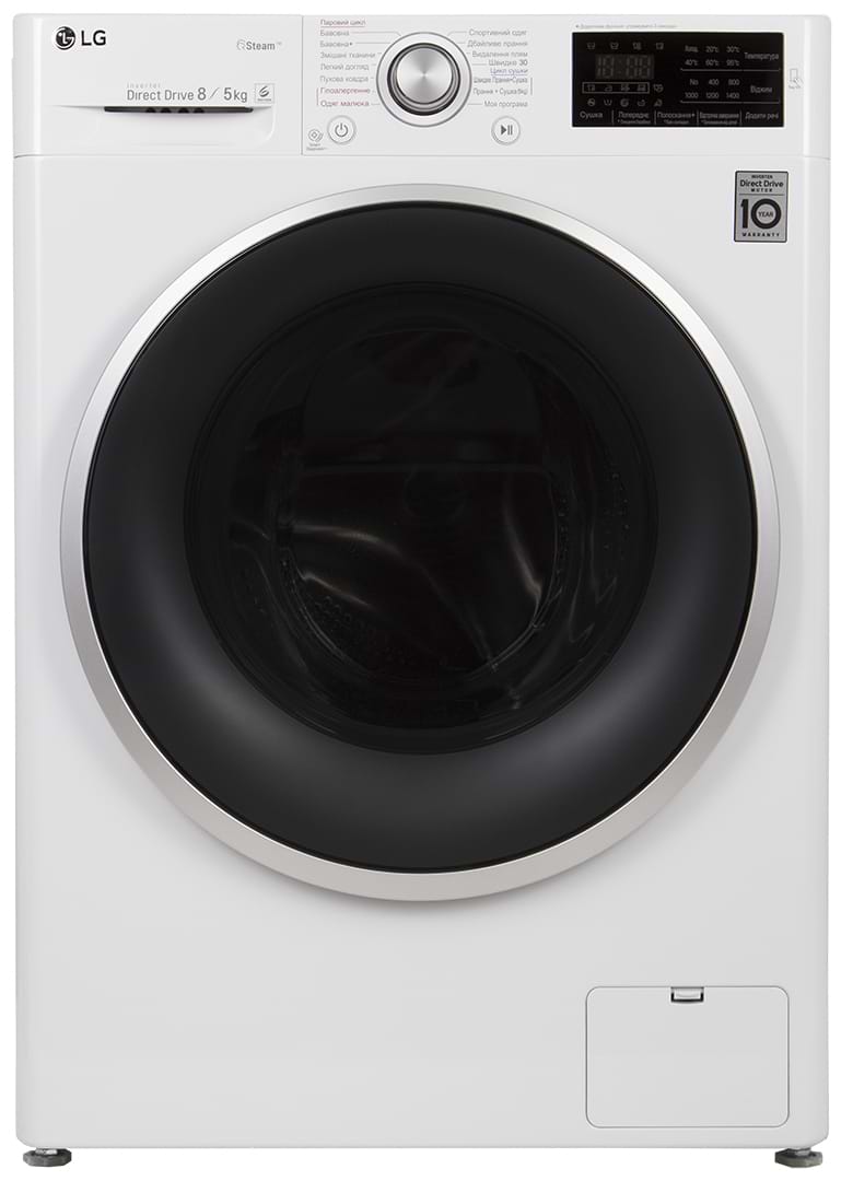 Вам будет сложно представить себе более идеальное устройство, чем стиральную машину LG F4J6TG1W с функцией сушки и первоклассными возможностями работы с паром. Умные алгоритмы вращения барабана и функция 6 motion, огромная вместимость на 8 кг и надежный инверторный двигатель. Казалось бы, что еще можно добавить в и без того прекрасный комплект характеристик? Беспроводное управление и диагностика через смартфон с NFC, Прямая система привода и десятилетняя гарантия на него – именно так должна выглядеть современная стиральная машина.