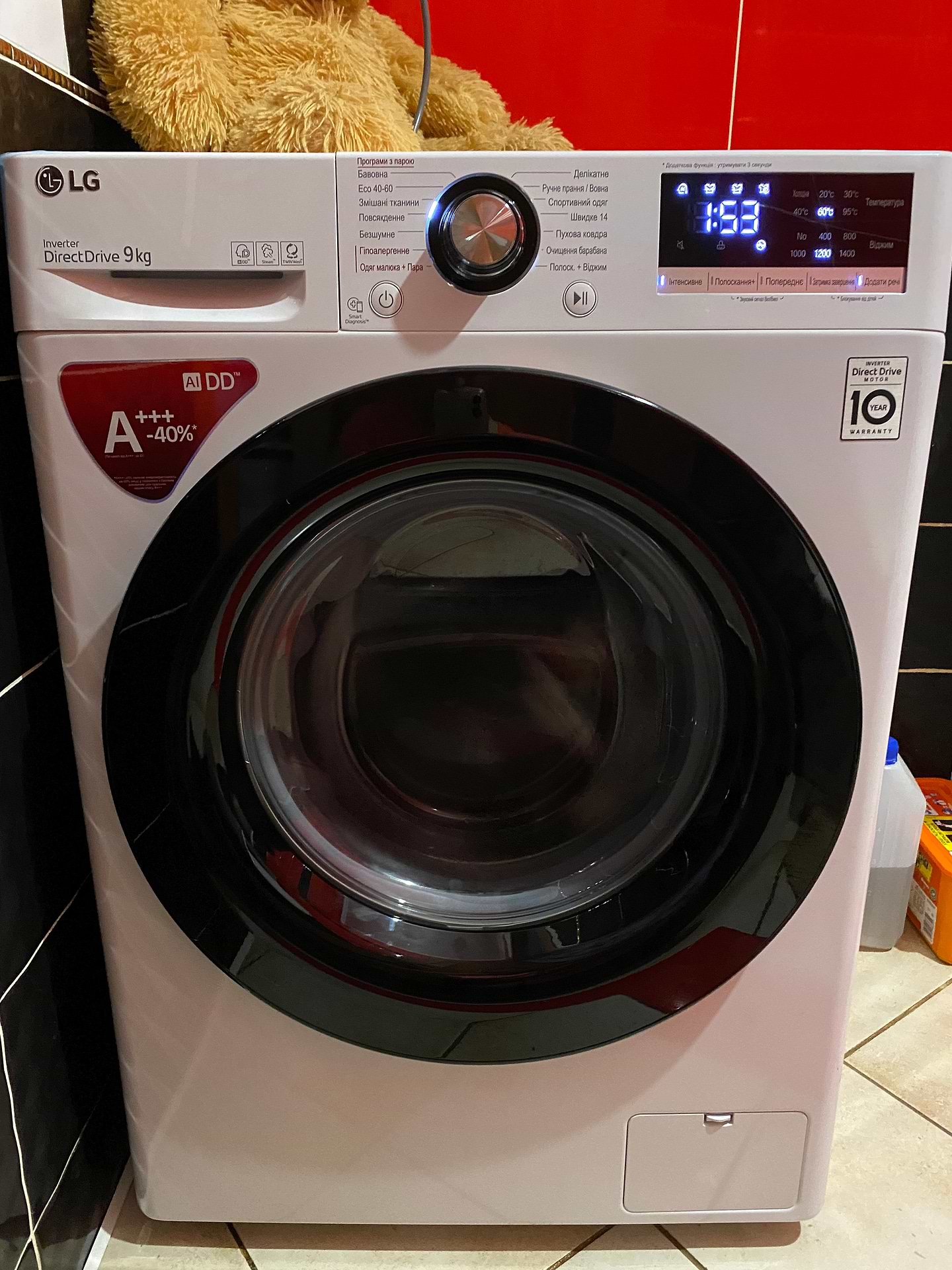 Нам понравилась стиральная машинка: вместительная 9 кг., стирает хорошо, тихо и много дополнительных функций. Восторге от режима отсрочки старта, удобно, когда проснулся, а белье уже постиранное. Подушки, плеты, теперь не проблемно освещать. Довольны все!
