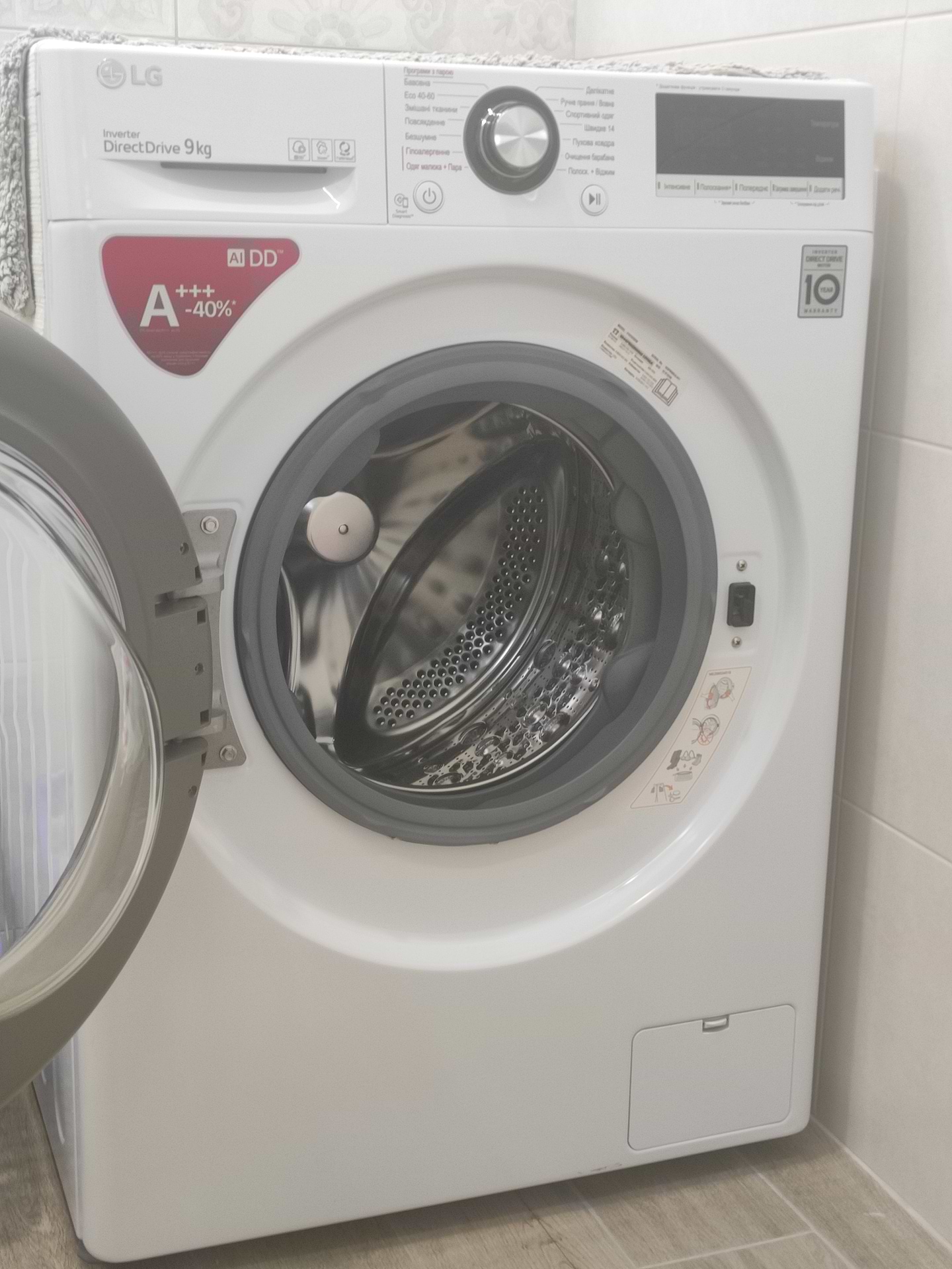 Стиральной машиной LGна 9 кг. Очень давольна,умная сама взвешивает,устанавливает время стирки,что экономит электричество,белье выстирывает отлично.Баробан очень огромный,что улучшает стирку белья.Красивый внешний вид,подсветка,музика?просто красавица.Спасибо магазину Комфорт и фирме LG за мою памошницу в доме?,да и очень тихо работает.
