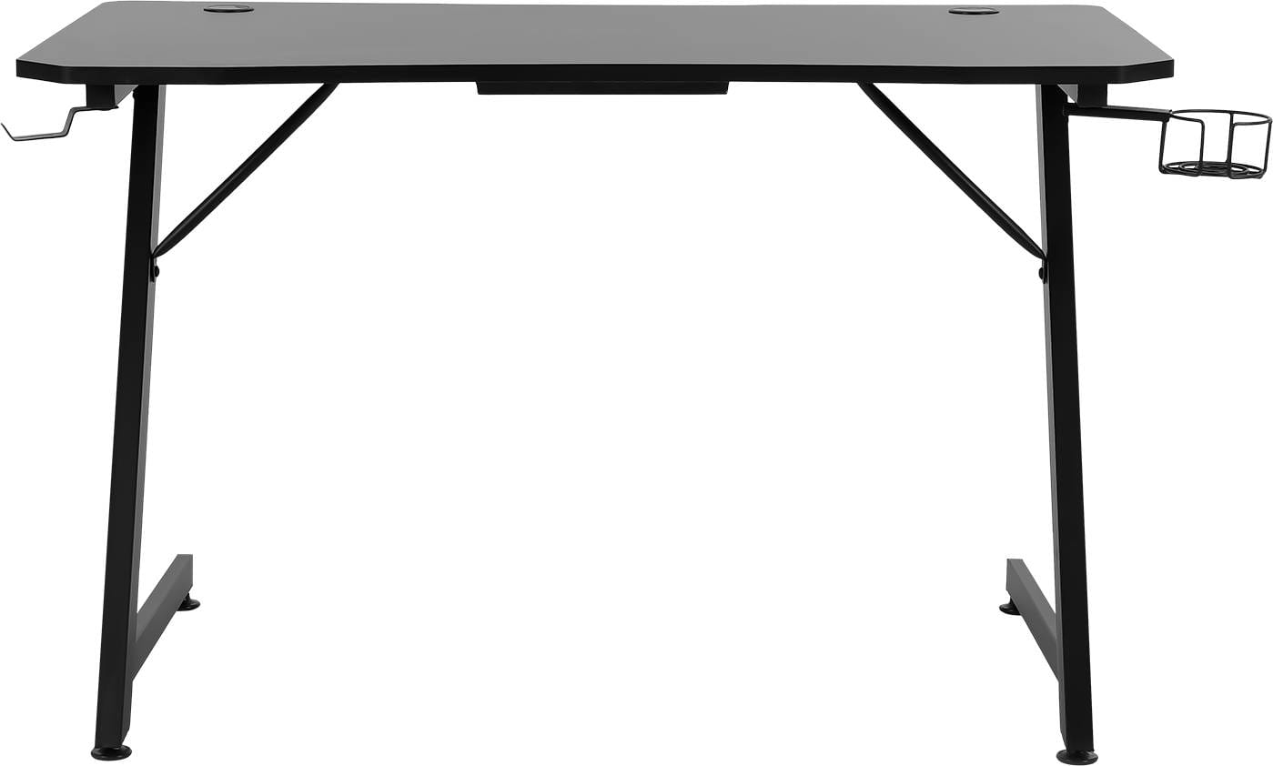 Міцна металева конструкція ніжок. Стільниця також з міцного матеріалу, не прогнуло за рік. Стійке до подряпин покриття. Все продумано до дрібниць: отвори для кабелів, гачок для навушників та підставка для чашки. Під стільницею підставка для переноски також є.