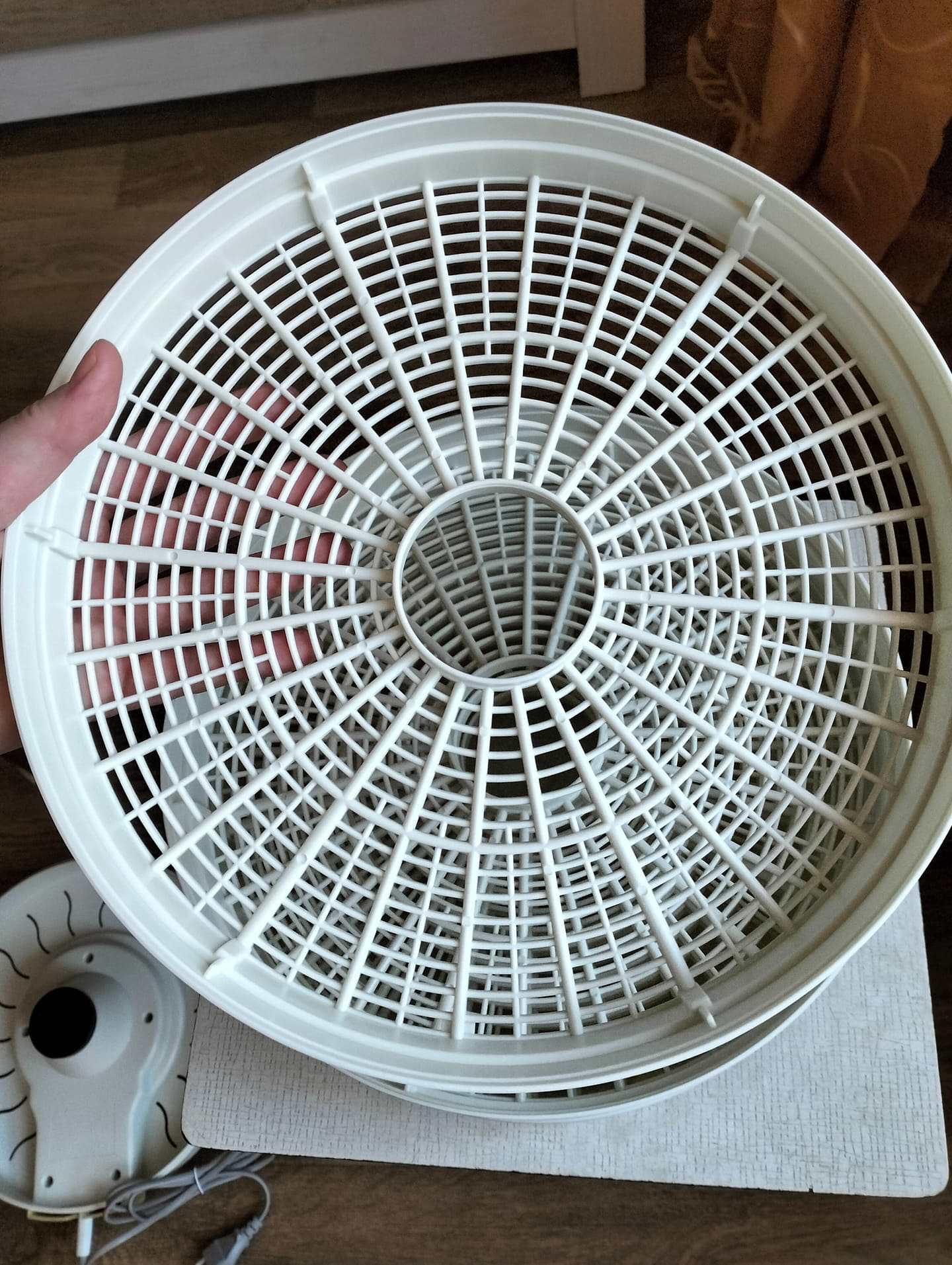 Проста та якісна сушарка. Пластик приємний на дотик, задирок немає, все гладеньке. Працює не дуже гучно, але то кому як. В коробці зручно зберігати у шафі.