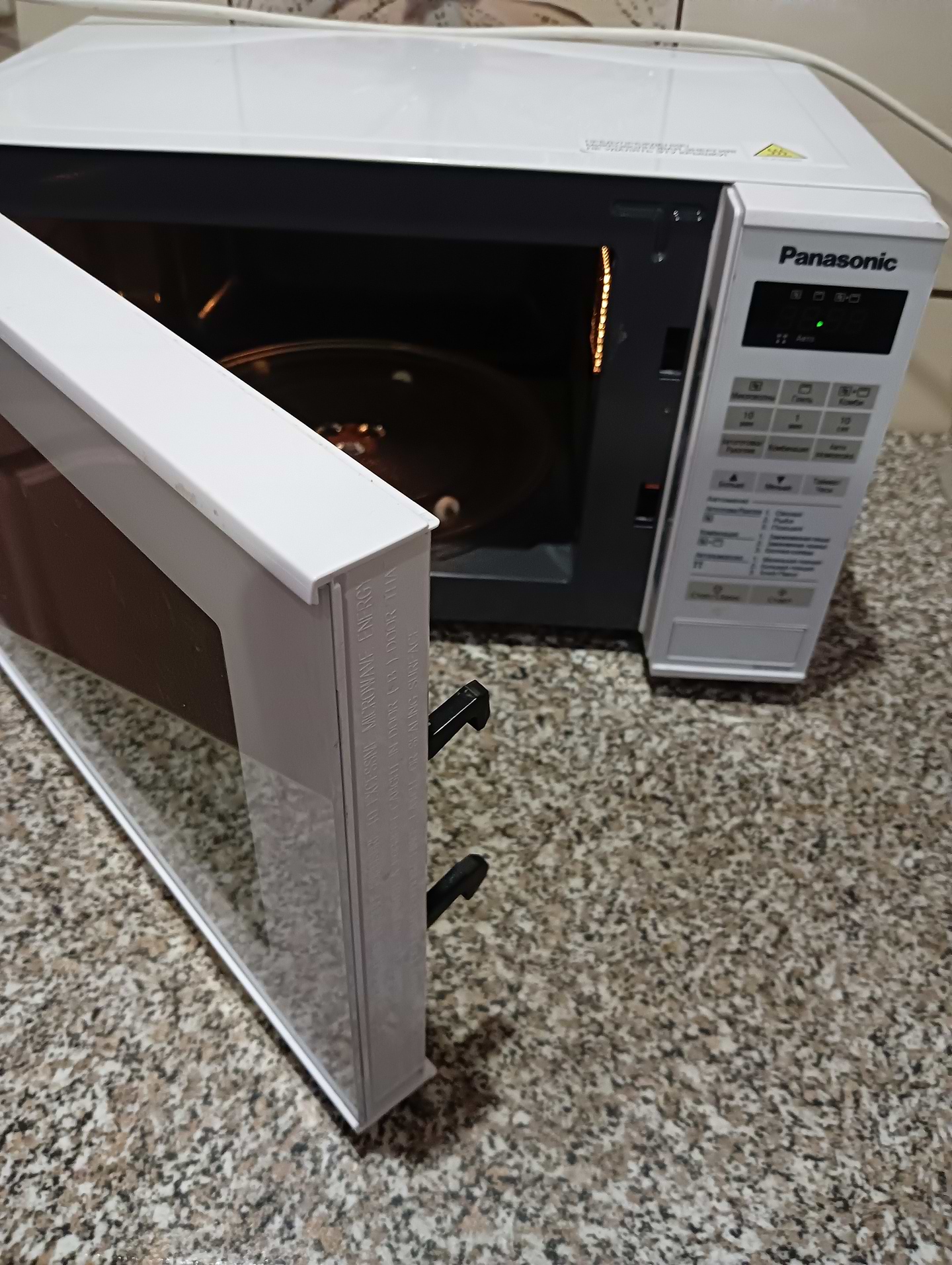 Мікрохвильова піч мені дуже сподобалась. Вона компактна, не займає багато міста на кухні. Мені подобається що відкривається за допомогою кнопки. Всі тарілочки вміщаються. Розігріває швидко.Розморожує добре. Меню зручне. Не гучно працює. В цілому довольна.