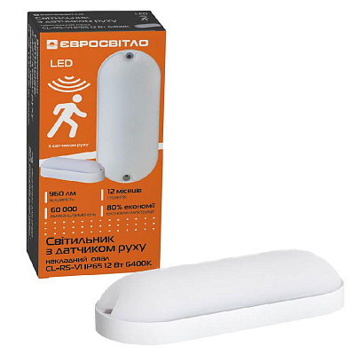 Все о Светодиодный светильник Євросвітло с датчиком движения накладной овал CL-RS-V1 IP65 12 Вт 6400К (000059215)