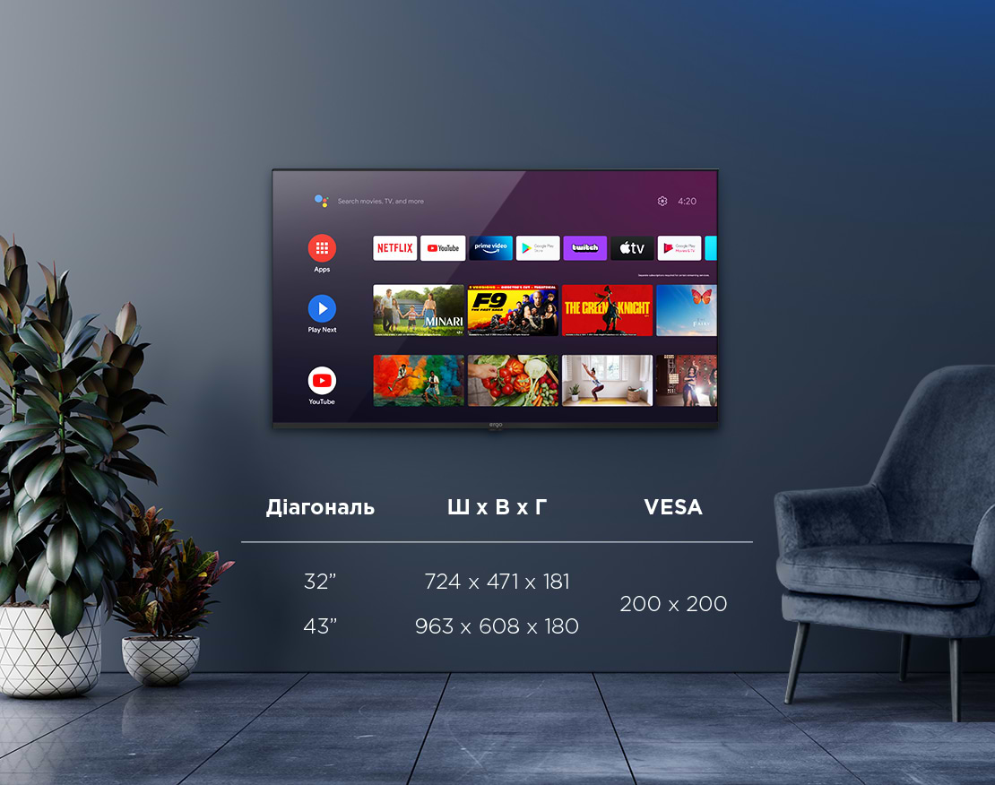 Официальная и самая популярная операционная система в мире от Google уже в вашем телевизоре ERGO. Безграничные возможности просмотра мировых стриминговых сервисов, новейшие премьеры, музыка, игры и путешествия в интернете на кнопке вашего пульта