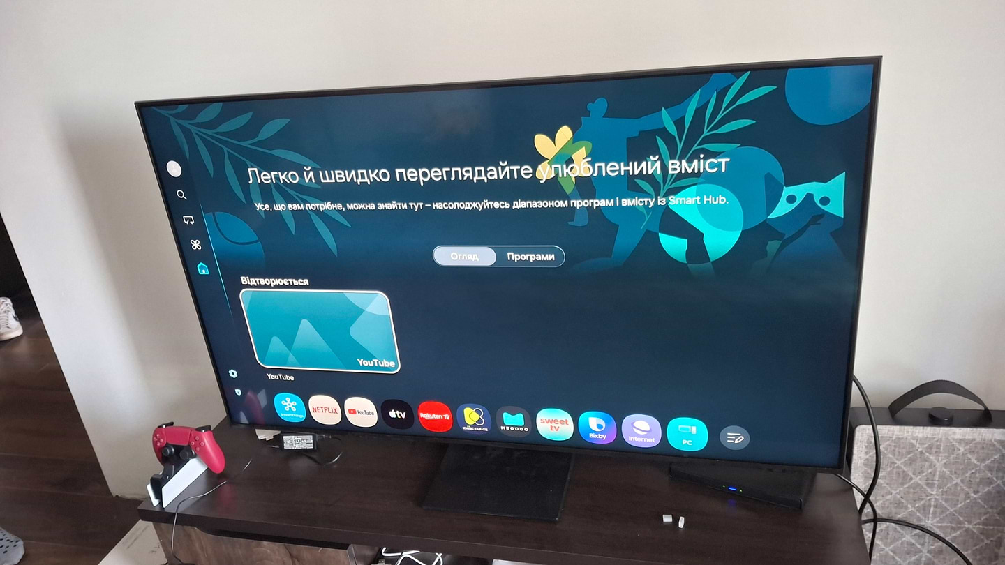 Придбали телевізор 15.03.2026. Це вже наш третій телевізор Samsung, але перший Neo Qled. Купити його на заміну 50 діагоналі, тому трішки переймалися, що 55 буде забагато. Але більша діагональ ідеально вписалась в наші масштаби. Картинка насичена, звук досить непоганий.
