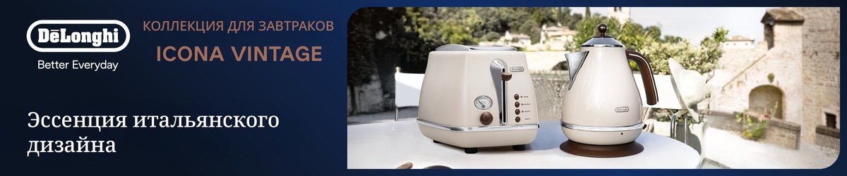 Не просто вернуться в прошлое, а взять самое лучшее и ценное смогли дизайнеры и технологи De'Longhi, создав новую уникальную ретро-серию электроприборов Icona Vintage. На вашей кухне будет воспроизведен эксклюзивный стиль, в котором винтажная классика сочетается с современностью приборов с самыми полезными функциями.