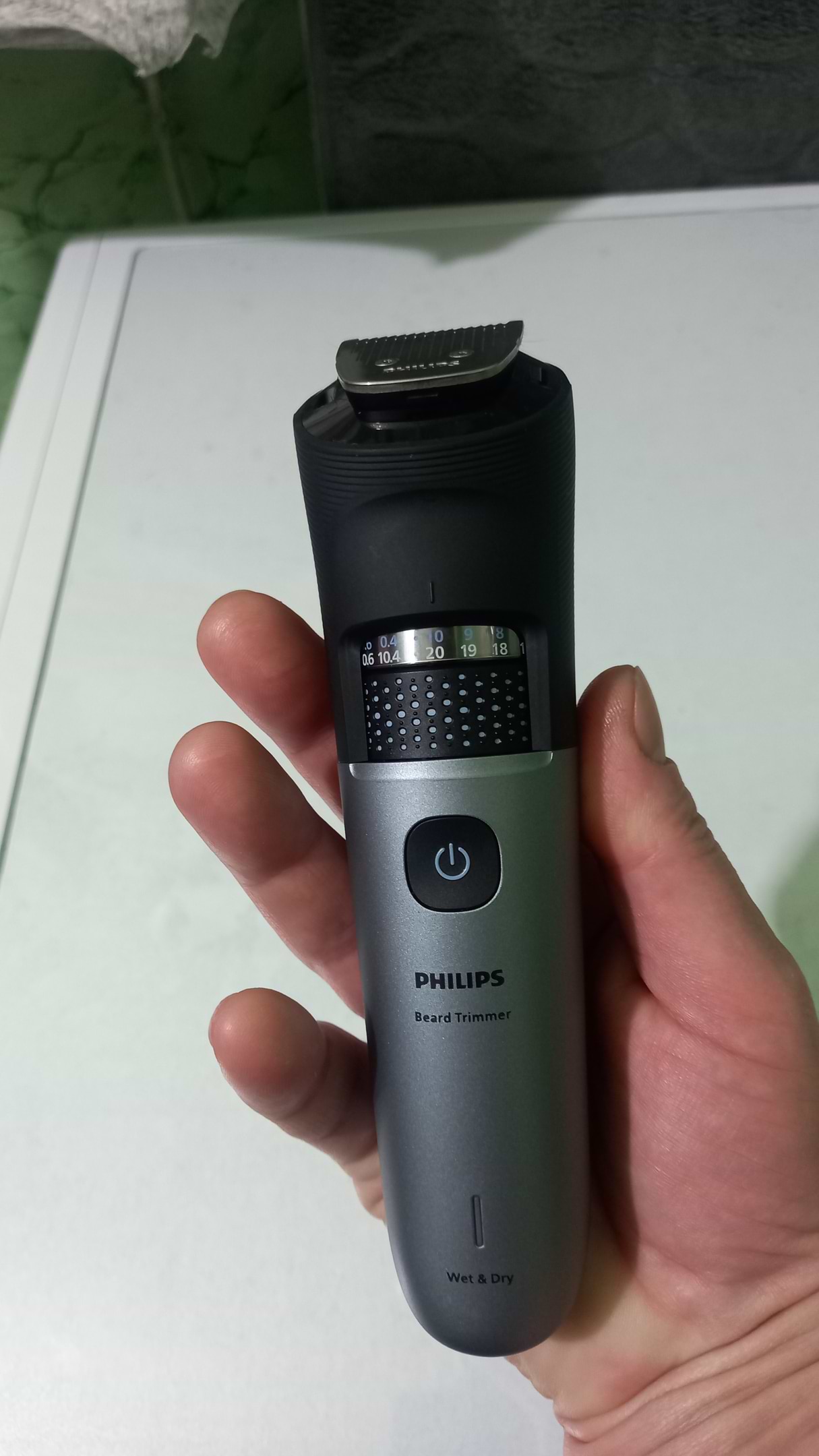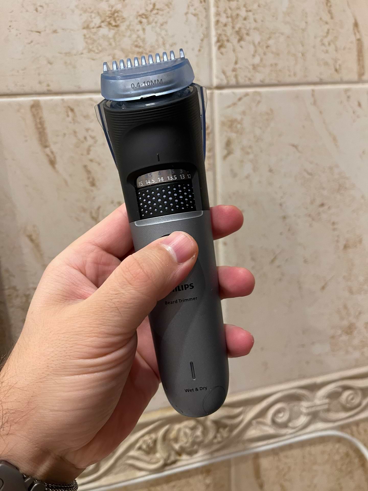Мені подобається коліщатко для точного вибору довжини. Кроки 0.2 мм дозволяють ідеально підігнати довжину бороди, неначе після барбера. Тример легко справляється з густою і жорсткою щетиною.