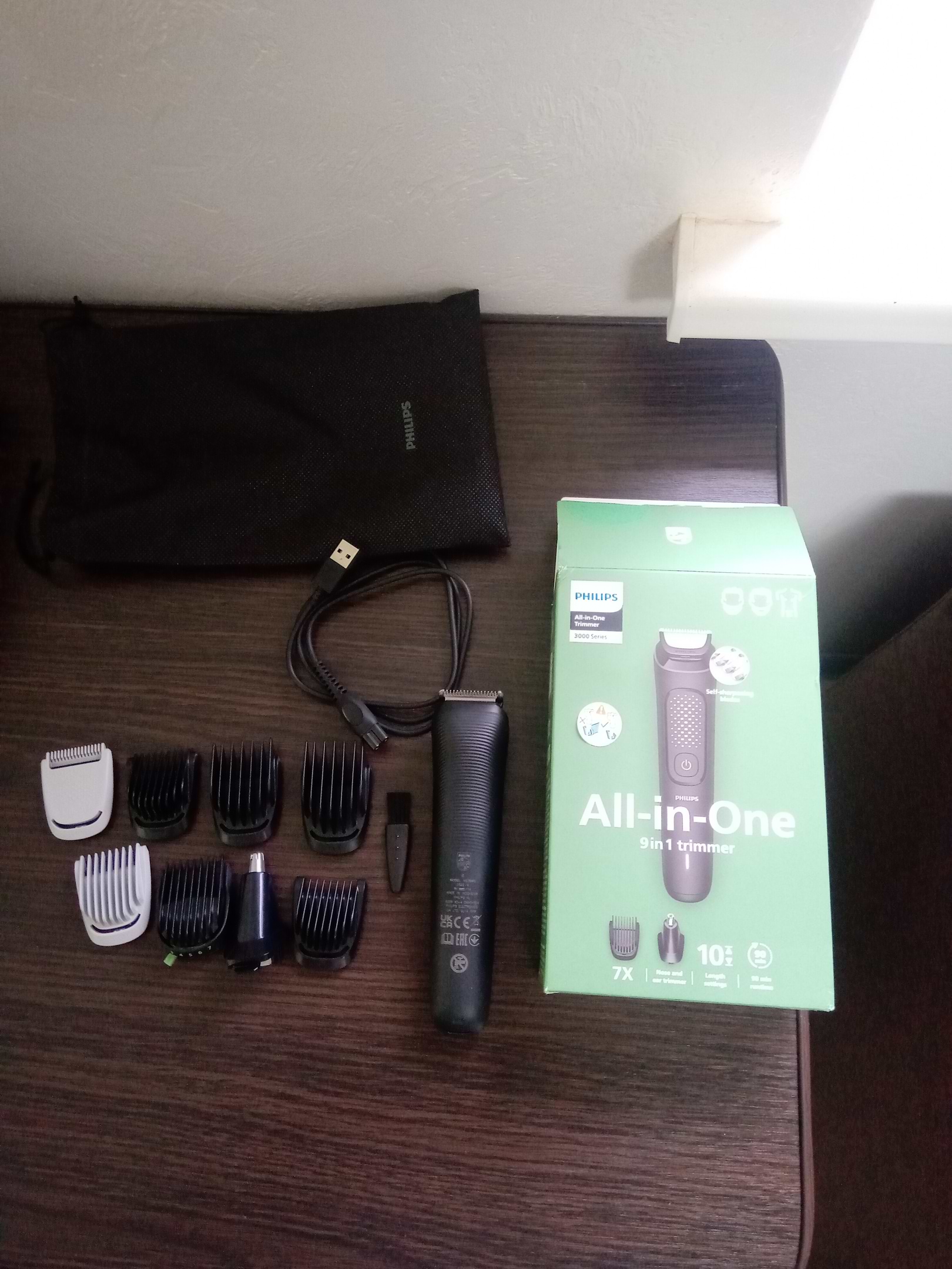 Тример має багато насадок. Виріб якісний. У комплекті мішечок для зберігання, кабель для зарядки USB. Зарядки немає.