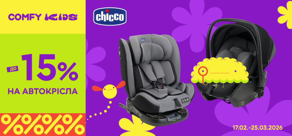 Знижки до -15% на автокрісла Chicco: ціни в COMFY (актуально на лютий 2026 р.)
