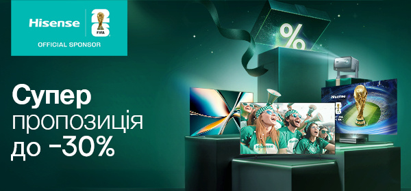 Вигода до -30% на телевізори Hisense у COMFY