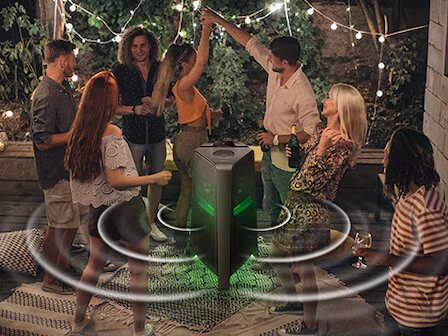 Двонапрямне звучанняЦя акустична система оснащена технологією Sound Tower, яка забезпечує двонапрямний звук. З нею площа, яку заповнює мелодія, стає більше, а враження від прослуховування — яскравіше. Ставте систему посеред танцмайданчику і насолоджуйтеся музикою, де б ви не стояли.