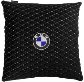 Автомобільна подушка EVAtech з алькантари 40x40 см BMW чорна з білою ниткою, малий ромб SPBALMRBWV005