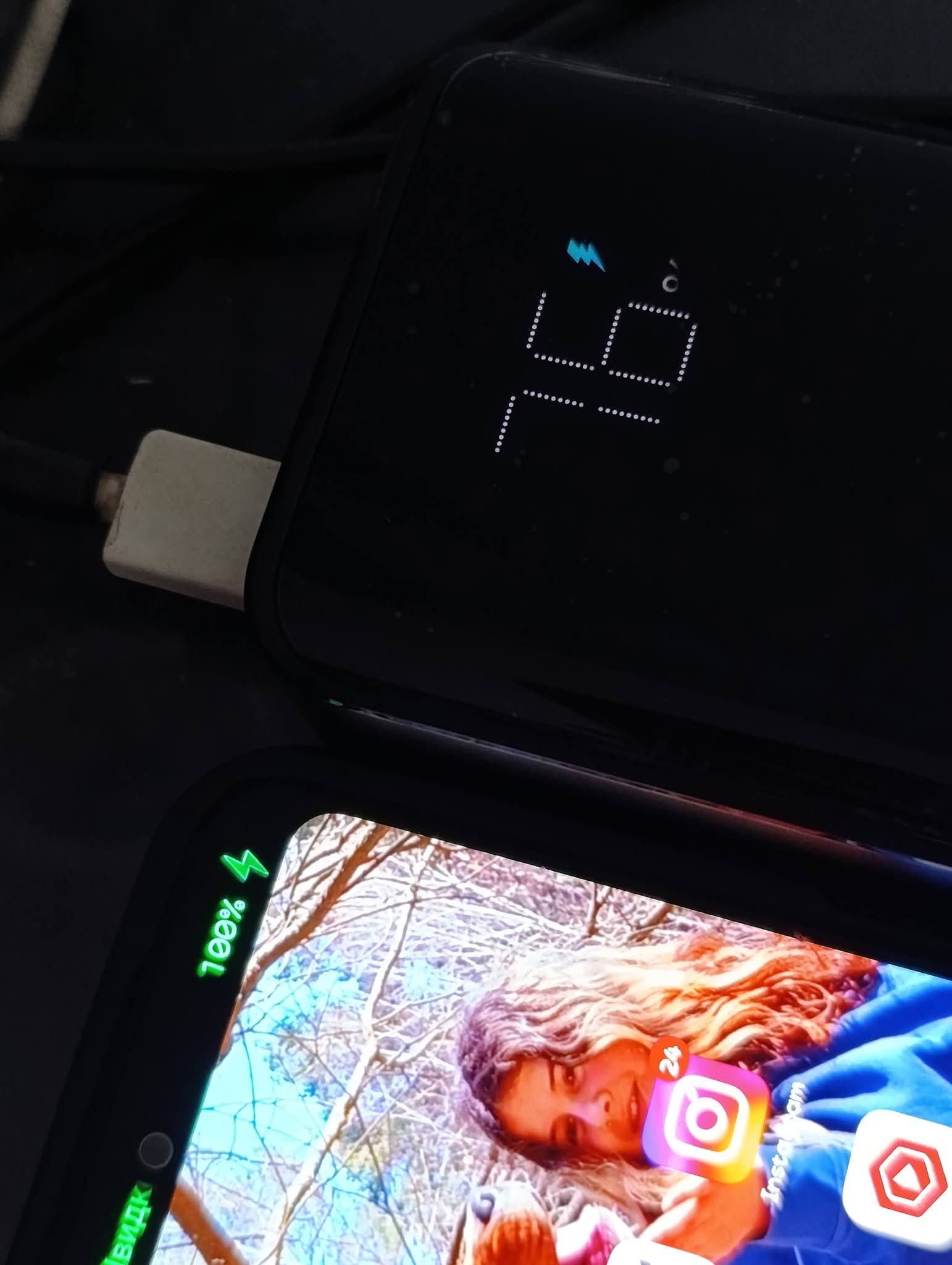 На телефоні лишалося 17% заряду павербанк був заряджений на 100%.