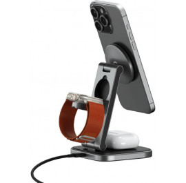 Бездротовий зарядний пристрій Satechi 3-in-1 Foldable Qi2 Wireless Charging Stand Space Gray (ST-Q31FM-EA)