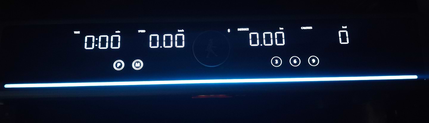 Стартує на швидкості 1 км/год, на панелі можна швидко перемикатись між 3/6/9 км/год, або вибирати заздалегідь налаштовану программу тренування.