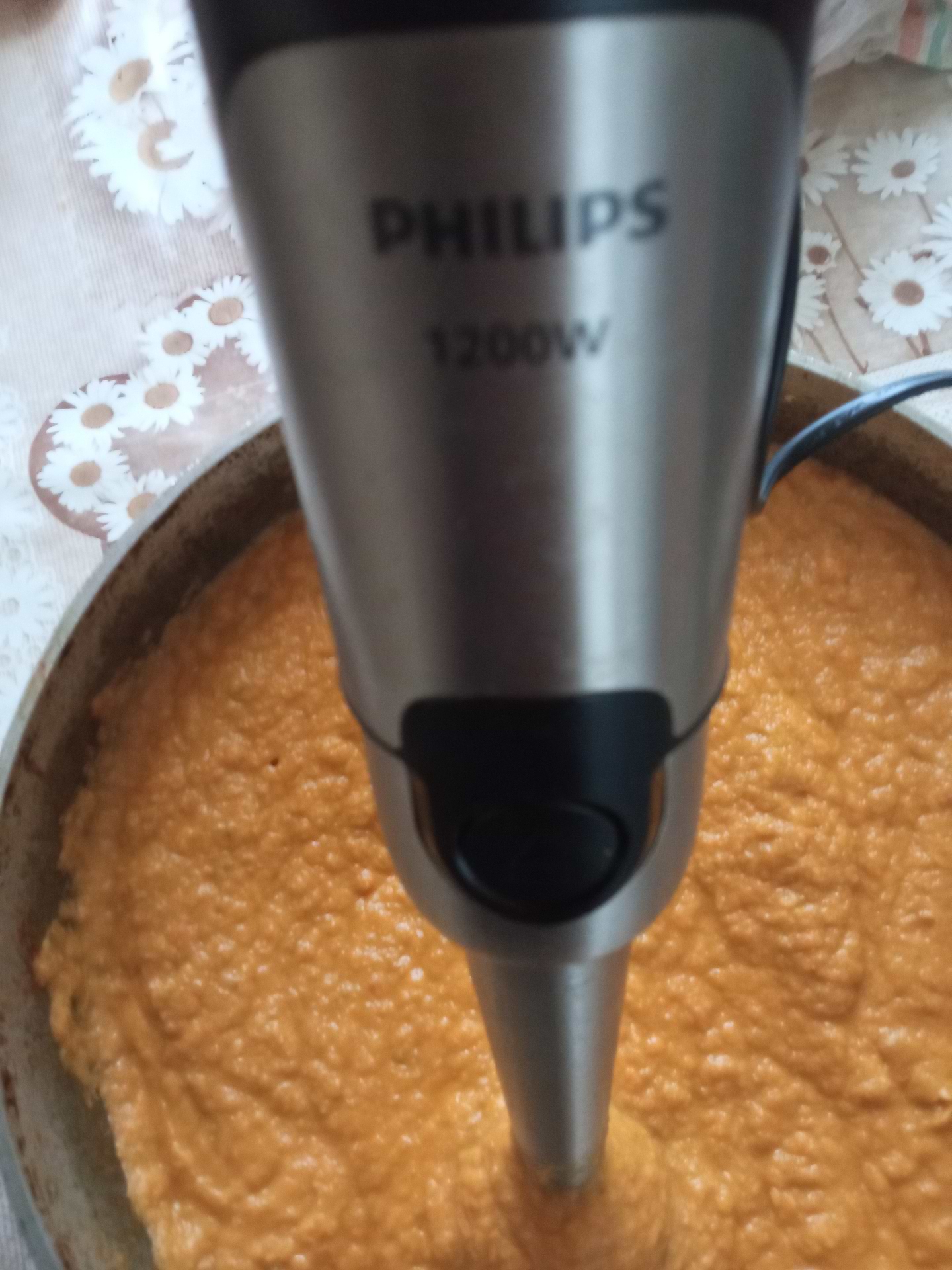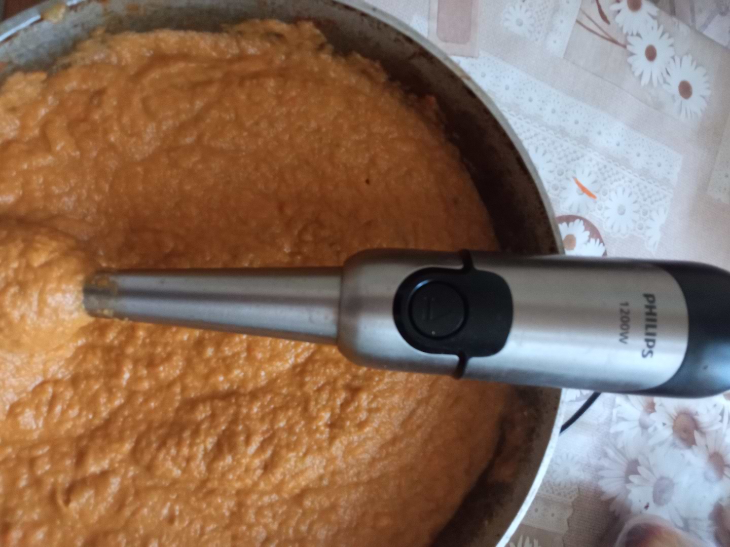 блендером задовільний, добра потужність, з сирої риби навіть фарш можно зробити. ногою добре теж робить соуси паштети. простий і якісний блендер. сучасний дизайн і удобно тримати в руці, одна кнопка яка від натискання підбирає обирати.