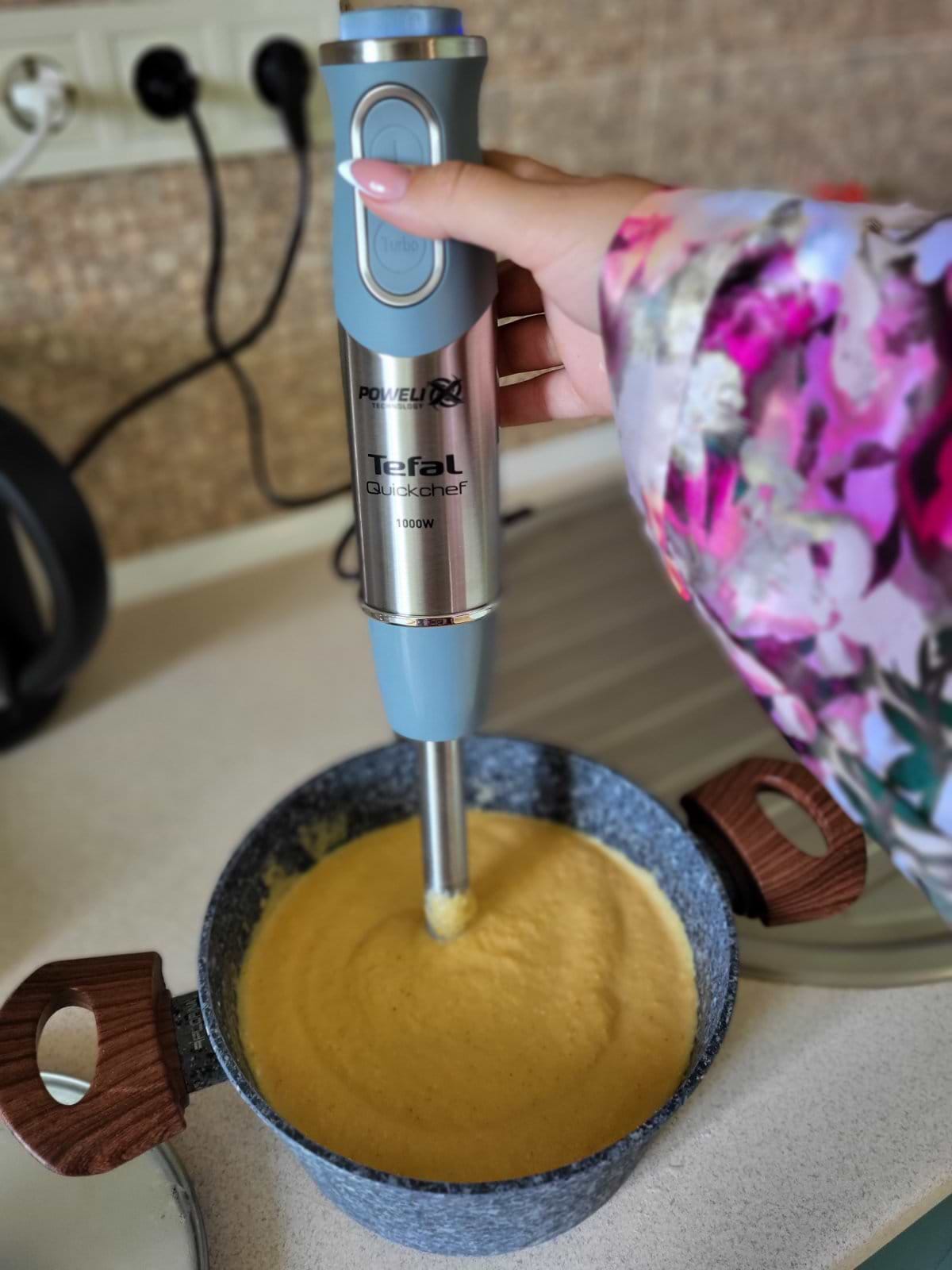 Гарний блендер, потужний,багато функцій може виконувати, гострі ножі, у комплекті є все що треба, навіть насадка для тіста. Спробувала відразу зробити соус, усе перемолов за 10-15 секунд. Картоплю погружним блендером перебила у пюре, читала що може вийти як клейстер, але ні все чудово. А з вінчиком тісто для млинців дуже швидко зробила, вийшла без грудочок борошна однорідна масса.