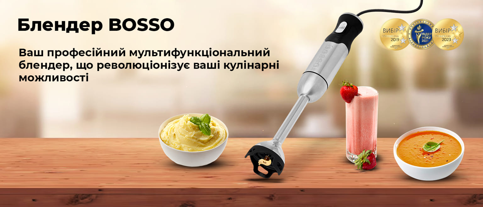 Блендер Bosso — це справжня інновація на кухні, яка замінює одразу кілька приладів. Обробляти м’ясні, молочні та інші продукти стало простіше завдяки п’ятьом особливим лезам. Тепер приготування буде займати менше часу, а для зручності та різноманіття у кожного леза є своя функція. Ваш блендер може стати м’ясорубкою, спінювачем або міксером — лише використайте потрібну насадку! Bosso — найкращий помічник на кухні.