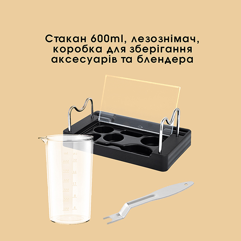 Ідеально підходить для приготування майонезу, коктейлів, напоїв, фруктового та картопляного пюре, соусів для салатів.