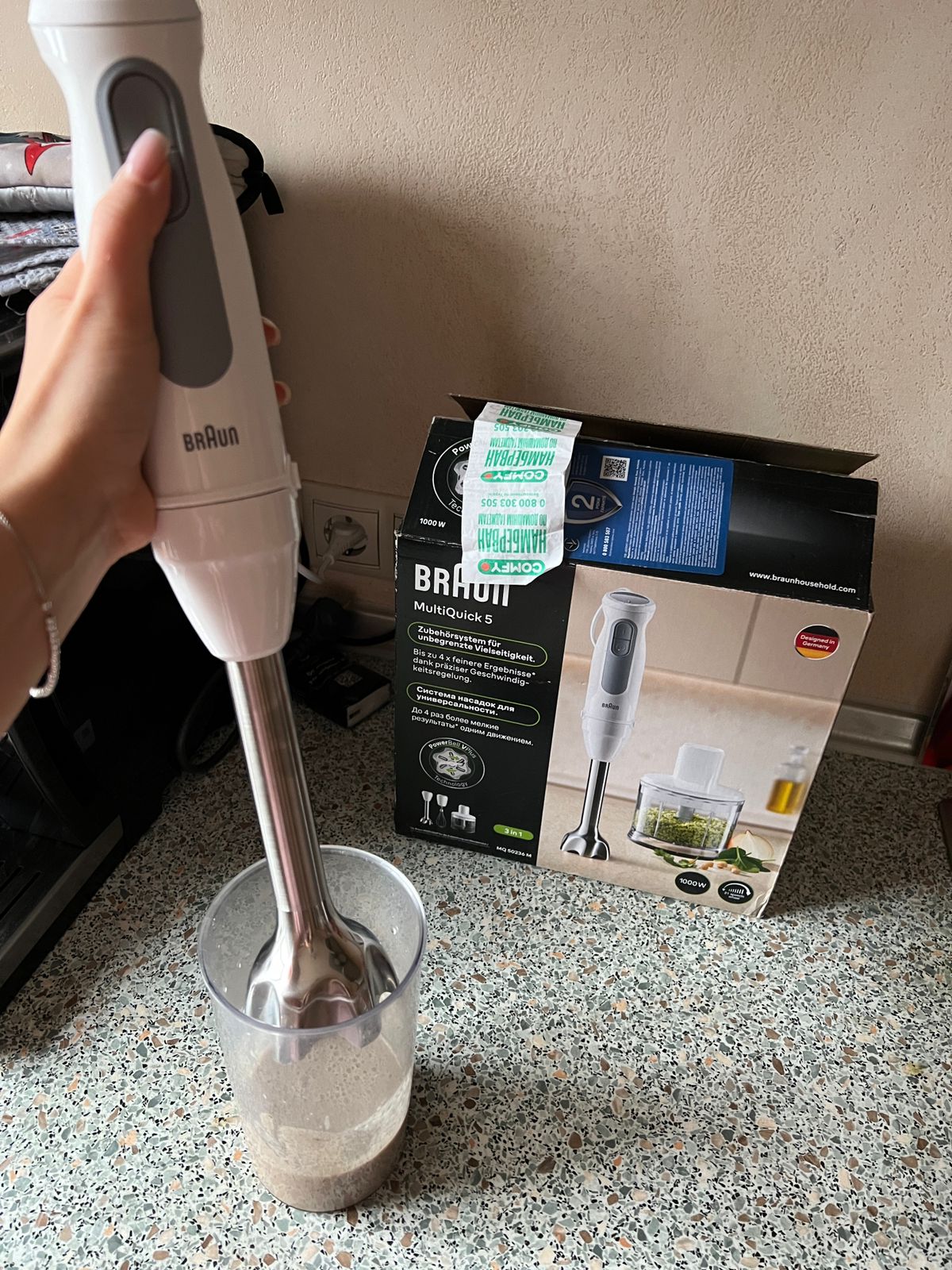 Тиждень тому придбала блендер Braun MQ 50236 MWH. Залишилася дуже задоволена. Потужність висока, відповідає вказаній. Працює добре та тихо. Виконує свої функції якісно. Минулий блендер згорів, позичала в дочки, іх цим блендером в порівняння не йде, дуже добрий блендер! Відповідає своїй вартості