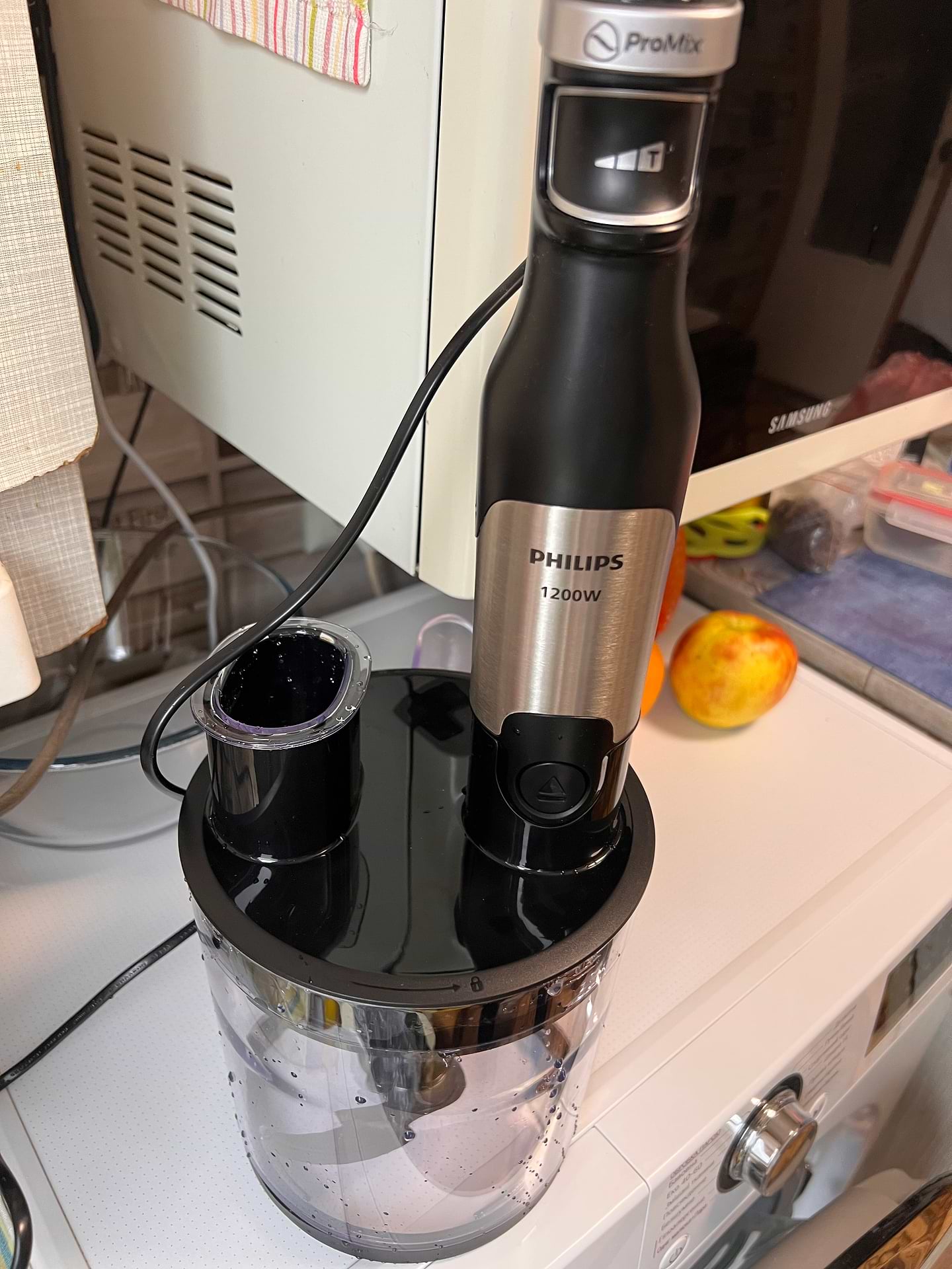 погружний блендер добре перемолює до консистенції пʼюре,однорідності,маленька чаша зручна для маленьких обʼємів заготовок,соусів.