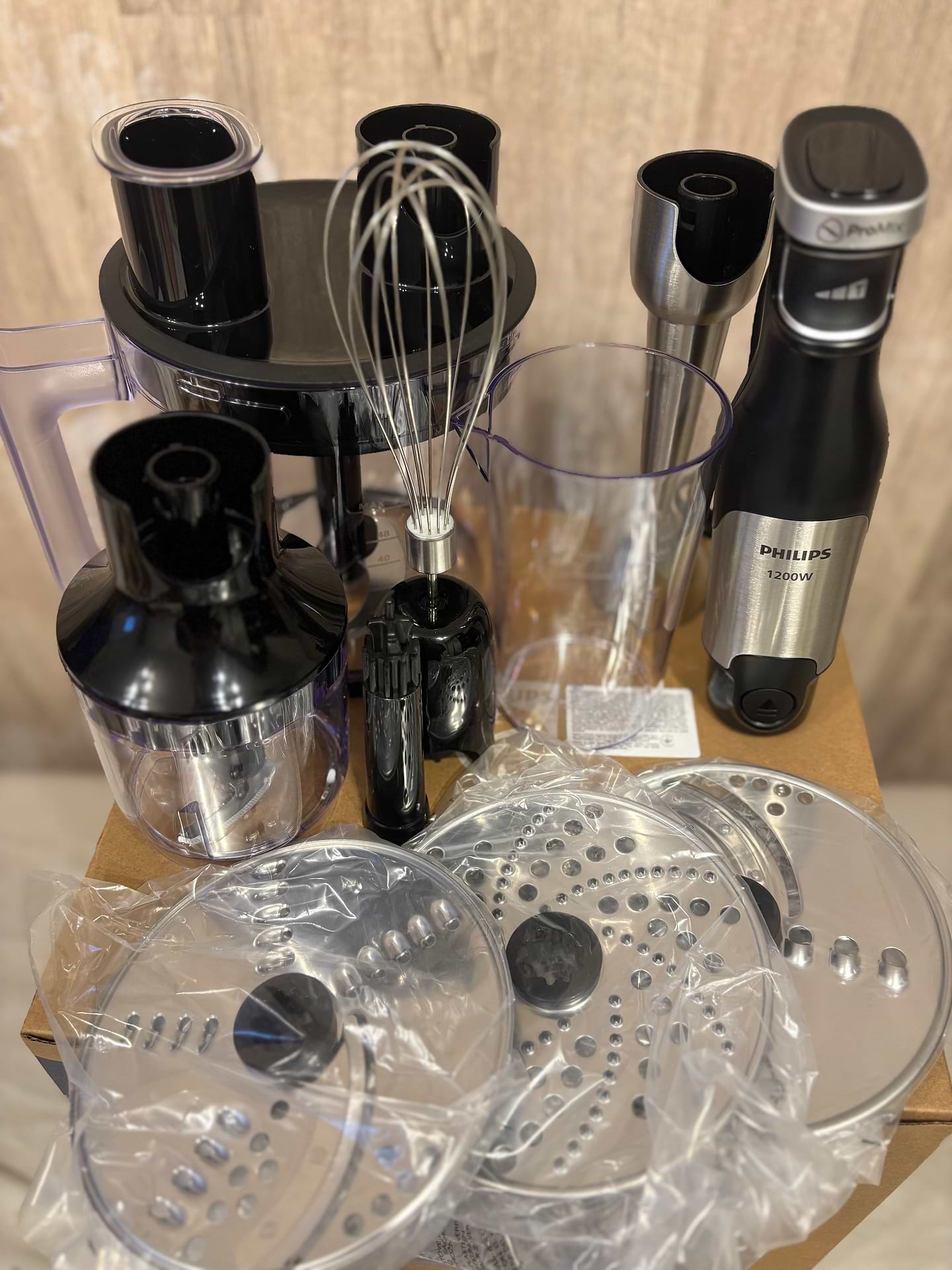 блендер купували на подарунок, пісдяпобаченогоподарунку,вирішилиісобівзяти.Набір великий, зручна велика чаша для натирання/нарізання,маленька чаша дуже зручна для збивання фаршу, або чогось іншого, я регулярно робюл фарш. блендер-ніжка потужна, взбиваю і перемелює, вінчик дуже зруяний для взбивання. як по мені блендер не сильно шумний, був до цього бош і року не протримався