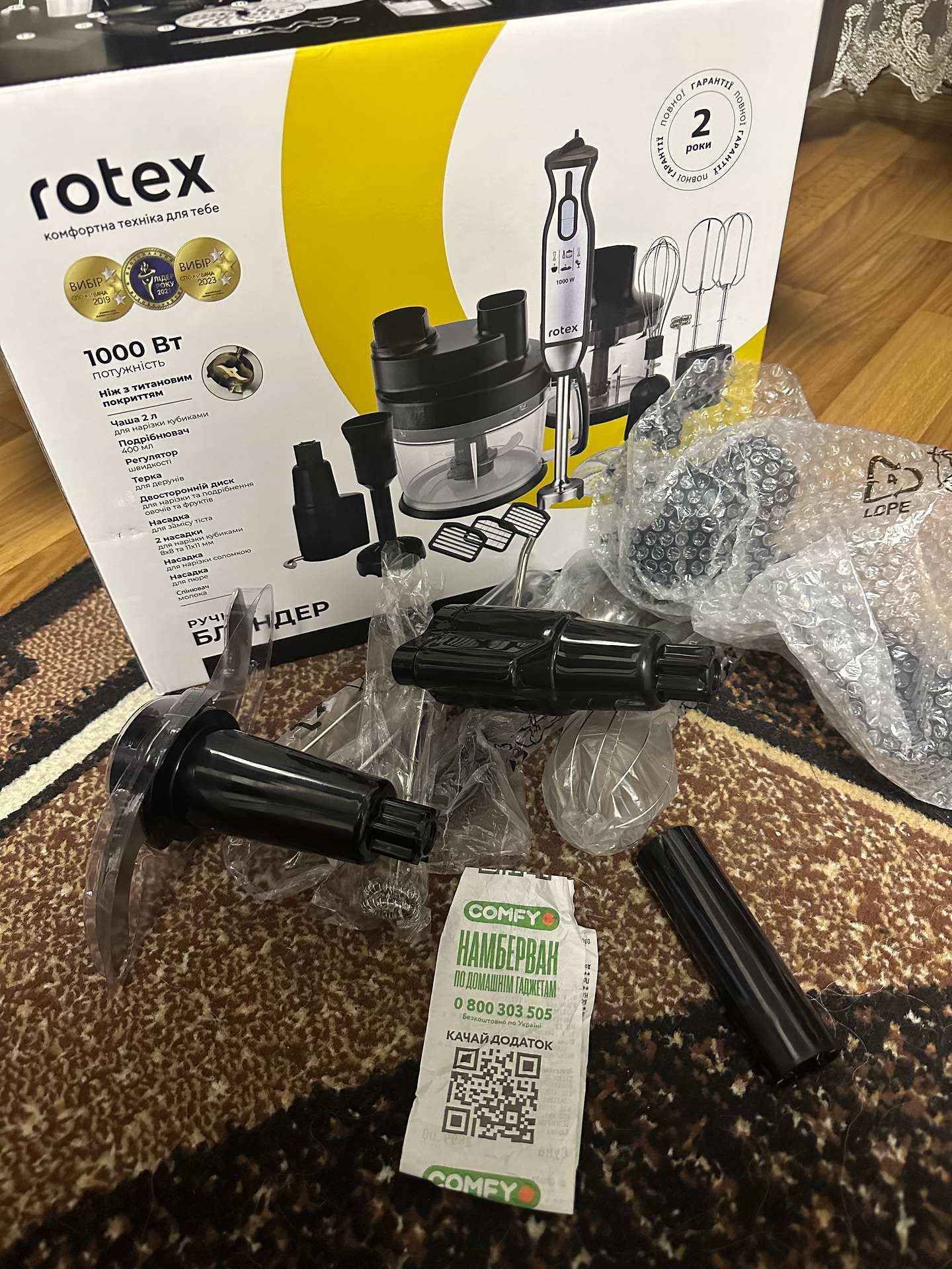 Дуже гарний блендер за свою ціну. Купила собі і потім ще купили сестрі такий самий. Ножі дуже гострі, обережно з ними, можна порізатись. Всі насадки ще не випробувала, але із того що спробувала, дуже все задовольнило.