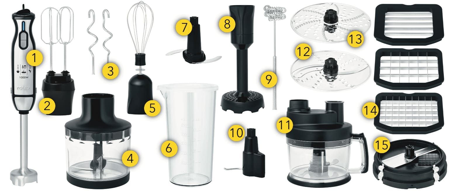 Rotex RTB890-B — це занурювальний блендер, який може замінити цілий кухонний комбайн. Завдяки 14 аксесуарам він перетворює приготування на легкий і швидкий процес, особливо у святковий період, коли стане в пригоді його унікальна функція нарізання кубиками. У комплект входять: чаша для нарізання кубиками на 2 л, подрібнювач 400 мл, мірний стакан 600 мл із кришкою, а також різноманітні насадки — від вінчика до спінювача для капучино. Стильний чорний корпус із петлею для підвішування чудово впишеться в інтер’єр будь-якої кухні. Rotex RTB890-B — це розумне рішення, коли хочеться, щоб складне стало простим!