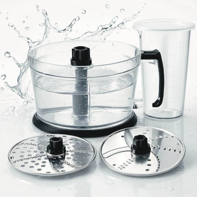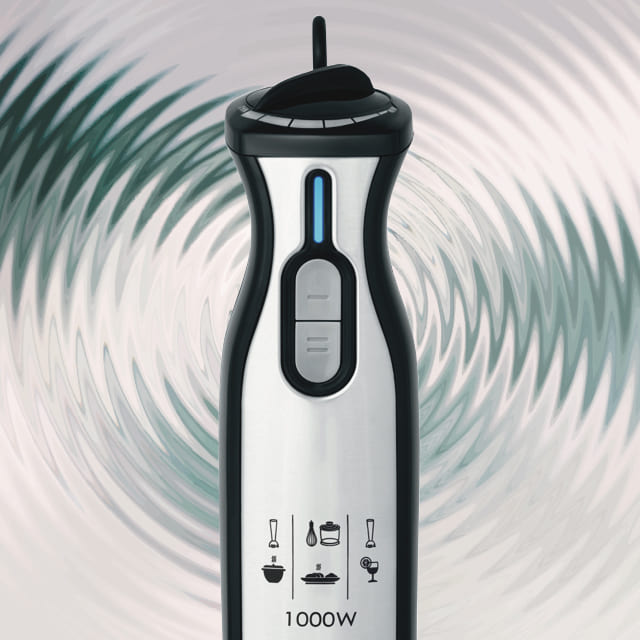 Завдяки компактному корпусу з петлею для підвішування блендер не займає багато місця на кухні. Занурювальна насадка з нержавіючої сталі та інші аксесуари прості в догляді, частину з них можна мити в посудомийній машині..