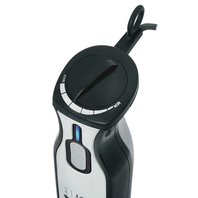 Завдяки двом швидкостям та плавному регулятору на корпусі можна налаштувати інтенсивність роботи. Роблячи ніжне пюре, вмикай меншу швидкість, а густе тісто краще замішувати на вищій. Тепер все на кухні — під твоїм контролем!