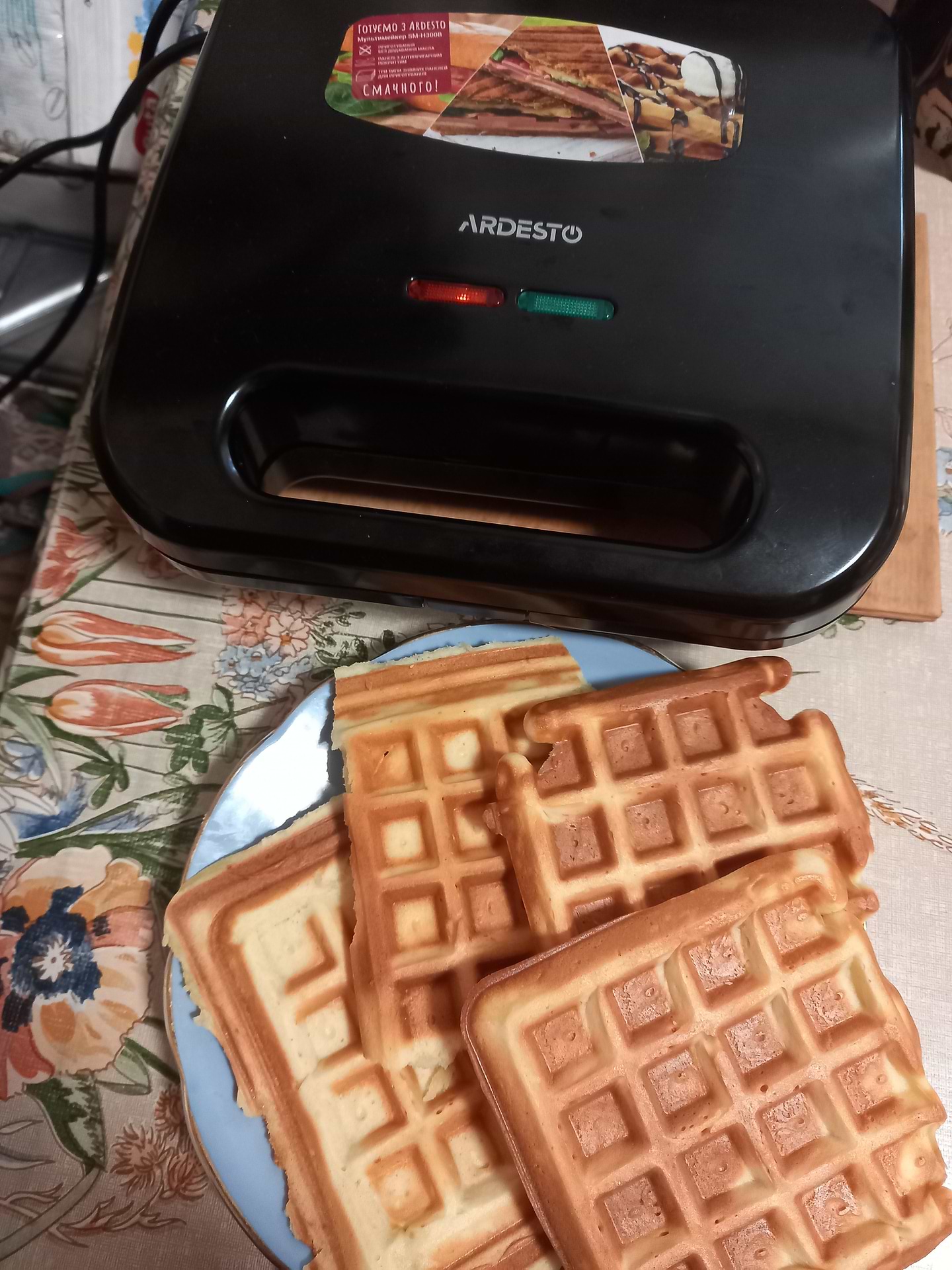 Дуже класна річ,особливо як є дитина шкільного віку,в школу бутерброди дуже смачні виходять,та й вафлі смачні,чудово працює
