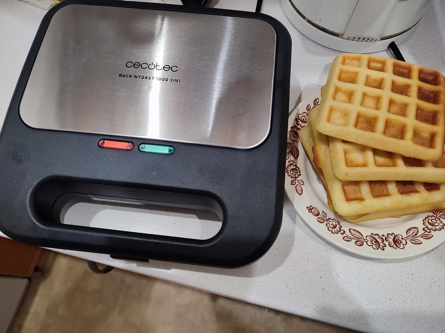 Дуже компактна, легко поміщається на кухонній полиці. За допомогою цього чудового пристрою, я можу приготувати смачні вафлі на сніданок та соковиті бутерброди на обід. Рекомендую всім господиням!