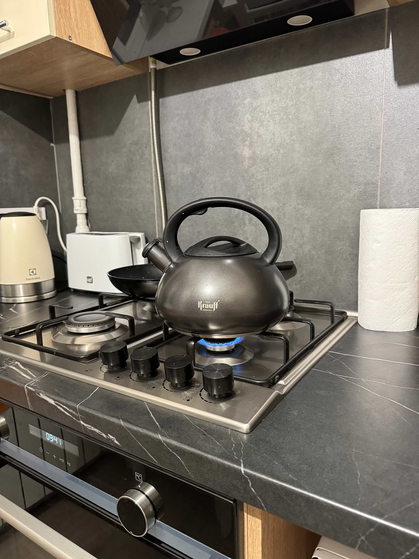 Хороший чайник, не маркий, матовый, на газу не обгорит, закипает вода быстро