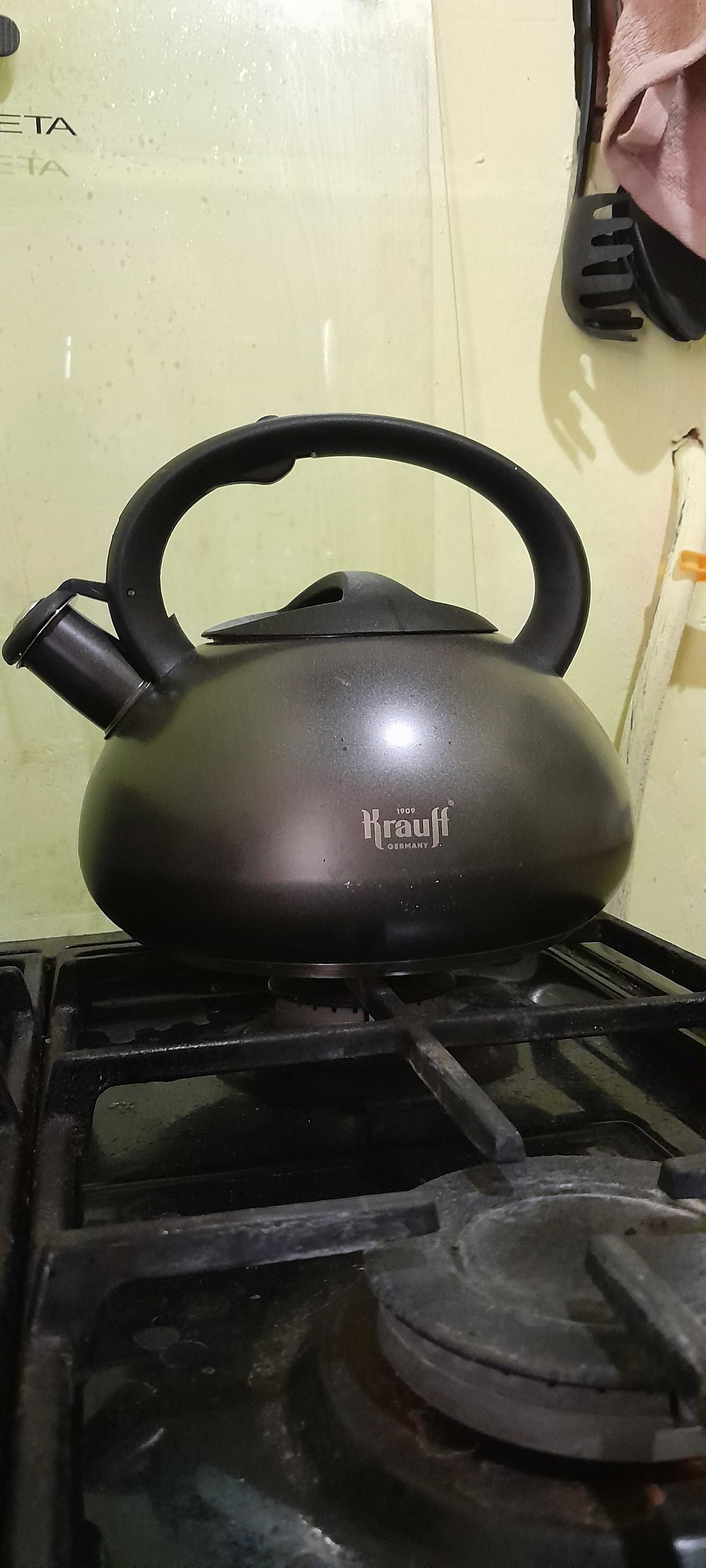 Купив такий чайник майже 3 місяці тому, зі скидкою до Дня народження. Поки що, політ нормальний. Зовнішній вигляд подобається, важкенький, в порівнянні з іншим, подібним, чайником. Єдиний, як на мій погляд, недолік - при закіпанні, з під кришки виходила частина пари, тому свисток, як на мене, свистів недостатньо гучно, тим більше, що той пар гріє ручку та може обпекти руку коли береш чайник. Пробував повернути кришку в інше положення. не допомогло. Одягнув на металеву частину (під пластик) резинове кільце і воно спрацювало. Пари з під кришки майже не стало, свисток свистить як у паровоза, чути навіть в самій дальній кімнаті. Тепер задоволений як слон, от тільки резинка, від температури, швидко виходить зі строю. Буду шукати інший варіант, щось силіконове. 5+