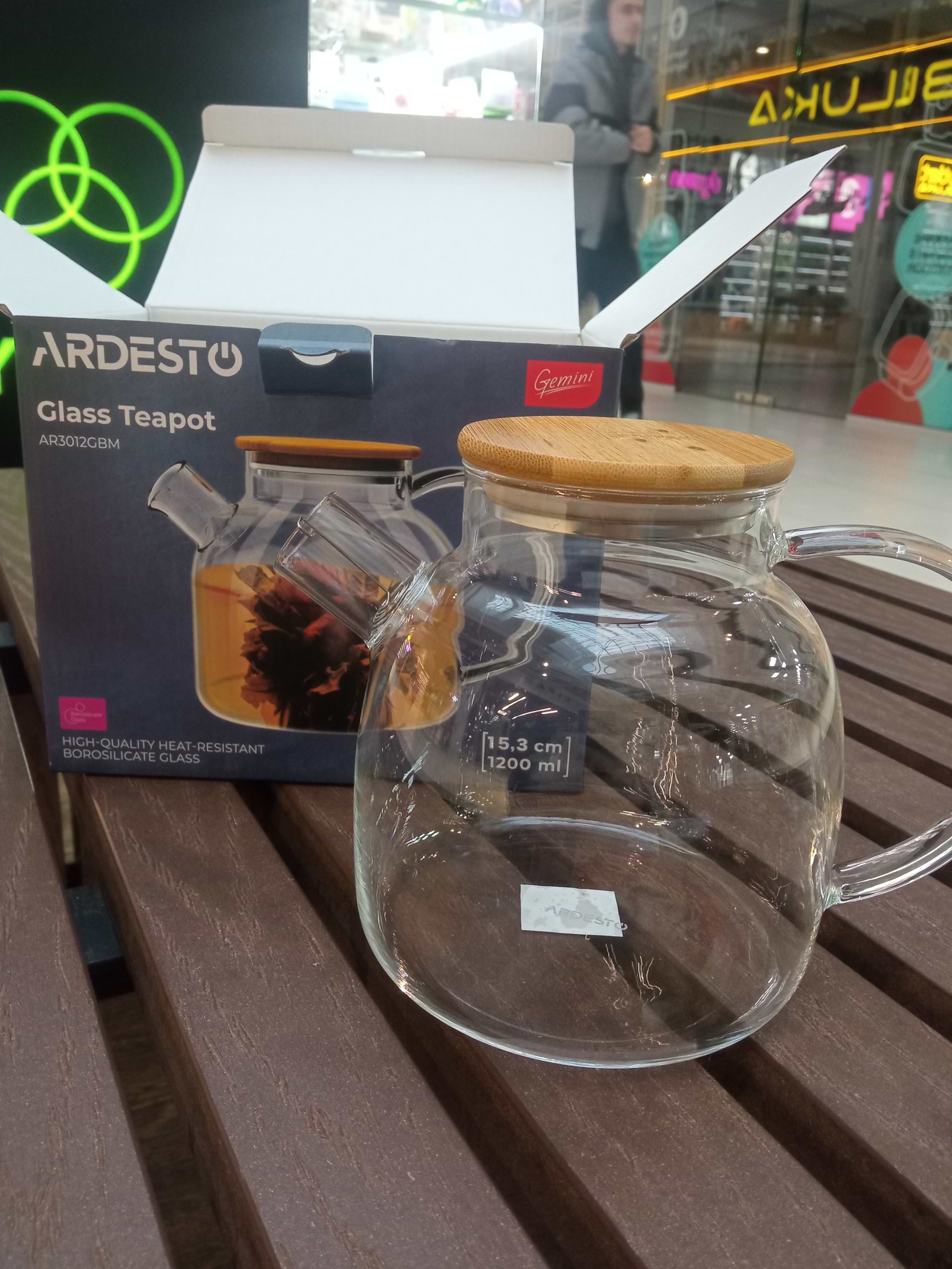 Замовляла через магазин, об'єм 1200 мл, по факту комфортний об'єм десь 1100 мл. Скло у цій моделі трішки тонше, ніж у моделі AR3010GB (брала перед цим). На кришечці нема надпису, як на фото.