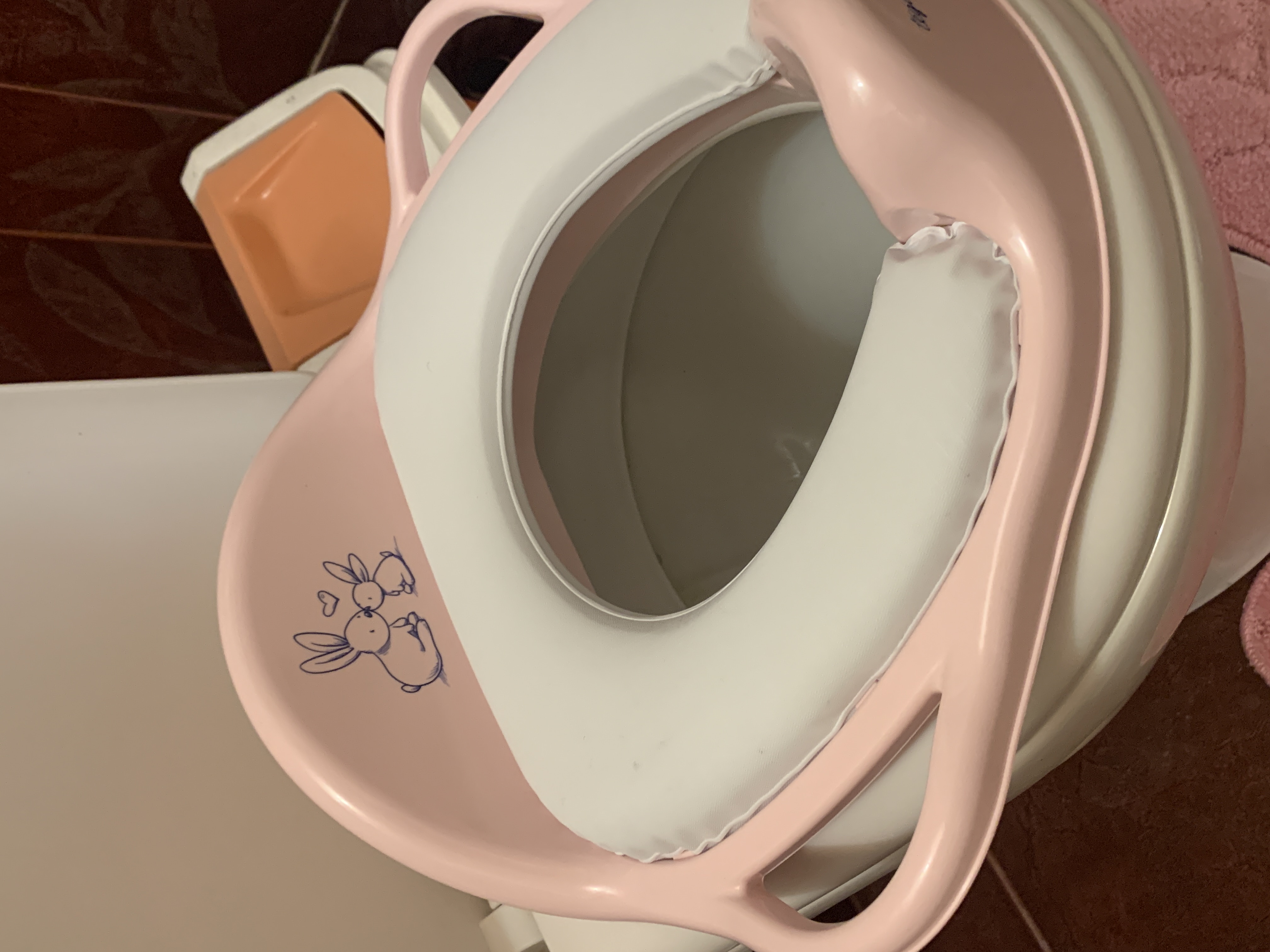 Покупали для девочки 3 лет, и отлично подошел, сидится удобно, мягкая, пластик качественный, снимать, надевать не тяжело. Моется тоже быстро и легко. Все довольны, никаких жалоб