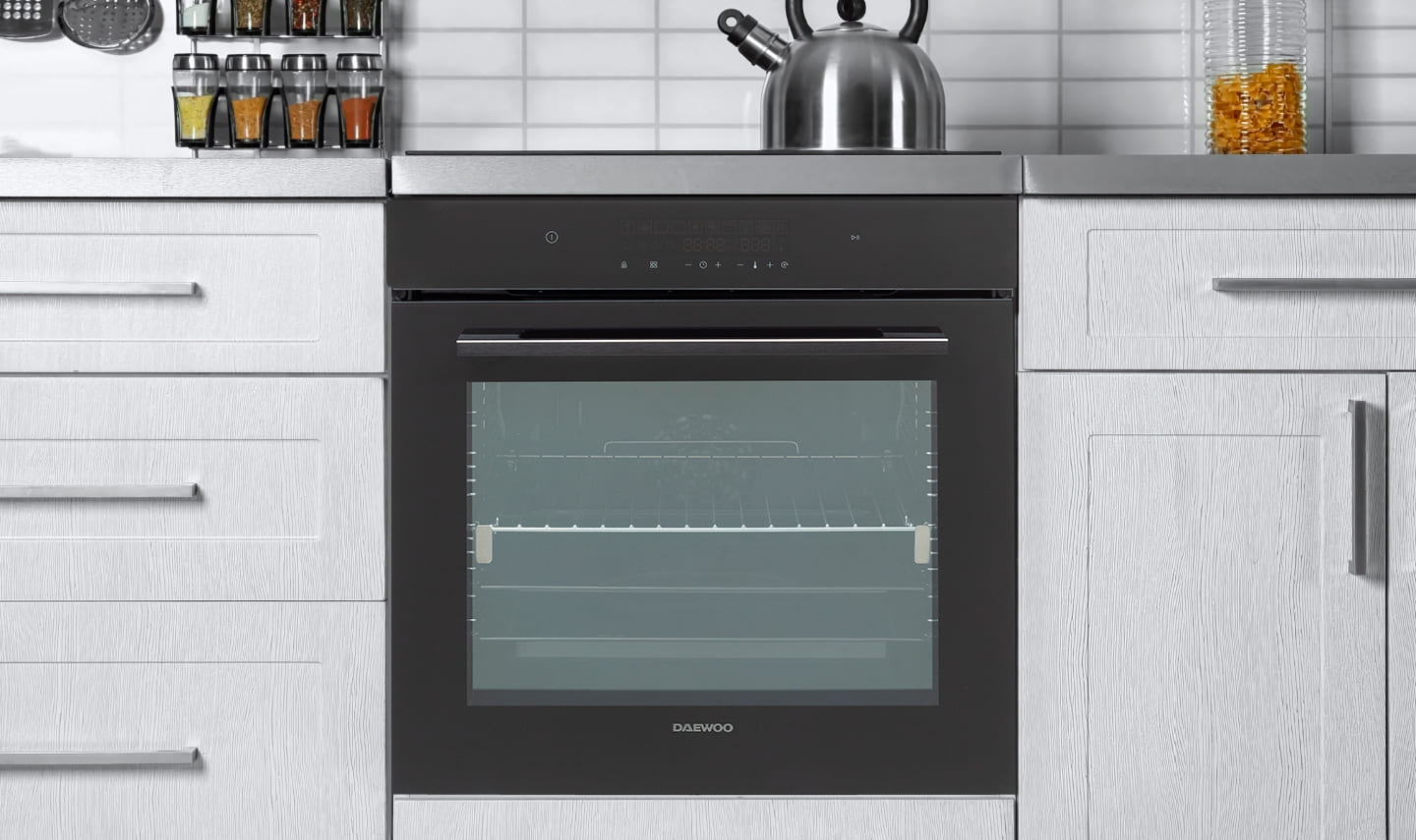 У дизайні зовнішнього вигляду духової шафи відмінно поєднується чорний колір, сенсорне управління та цифровий дисплей. Ця модель відмінно поєднується з будь-яким кухонним інтер'єром.