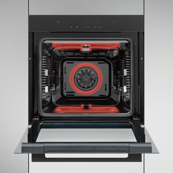 Одночасна робота верхнього, нижнього і кільцевого нагрівального елемента з вентилятором. Рівномірний розподіл тепла в усіх напрямках дека. Час приготування на 20 % коротший, ніж у звичайних функціях приготування.