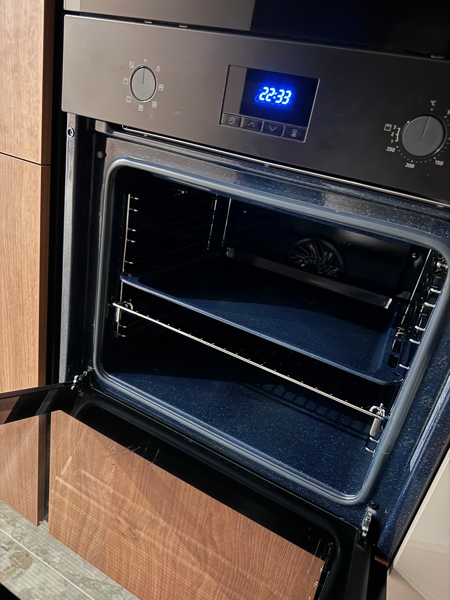 Хороша духова шафа, користуюсь більше року, гарний дизайн. Єдиний мінус це після виключення електроенергії збивається годиник, не вже важко було зробити його більш автономним