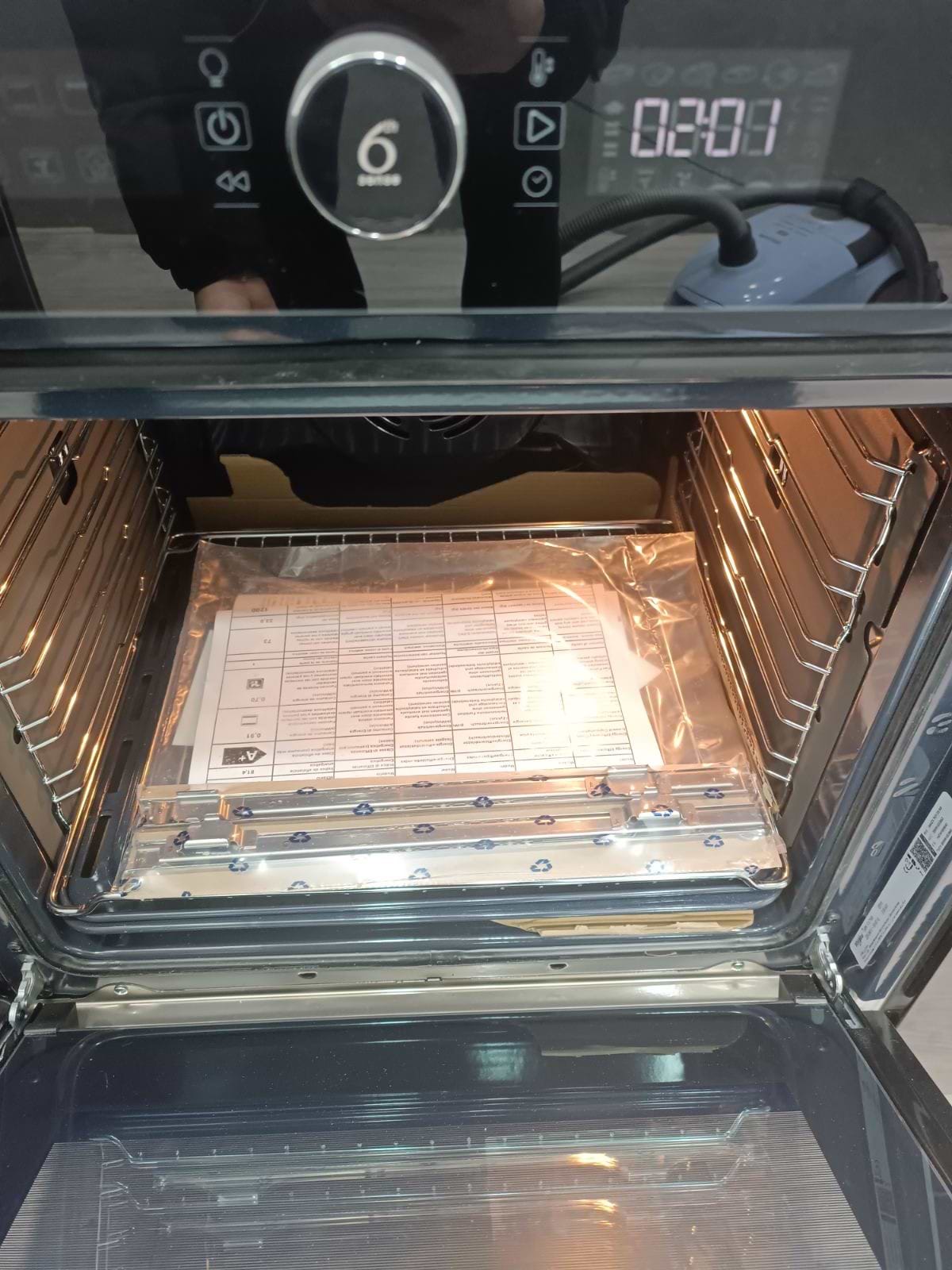 Духова шафа виглядає дуже сучасно, функцій багато і треба ще розбиратись. Дуже містка в порівнянні з попередньою. в комплектації має 2 піддони, решітку та телескопічні направляючі які треба встановити на 1 з рівнів.