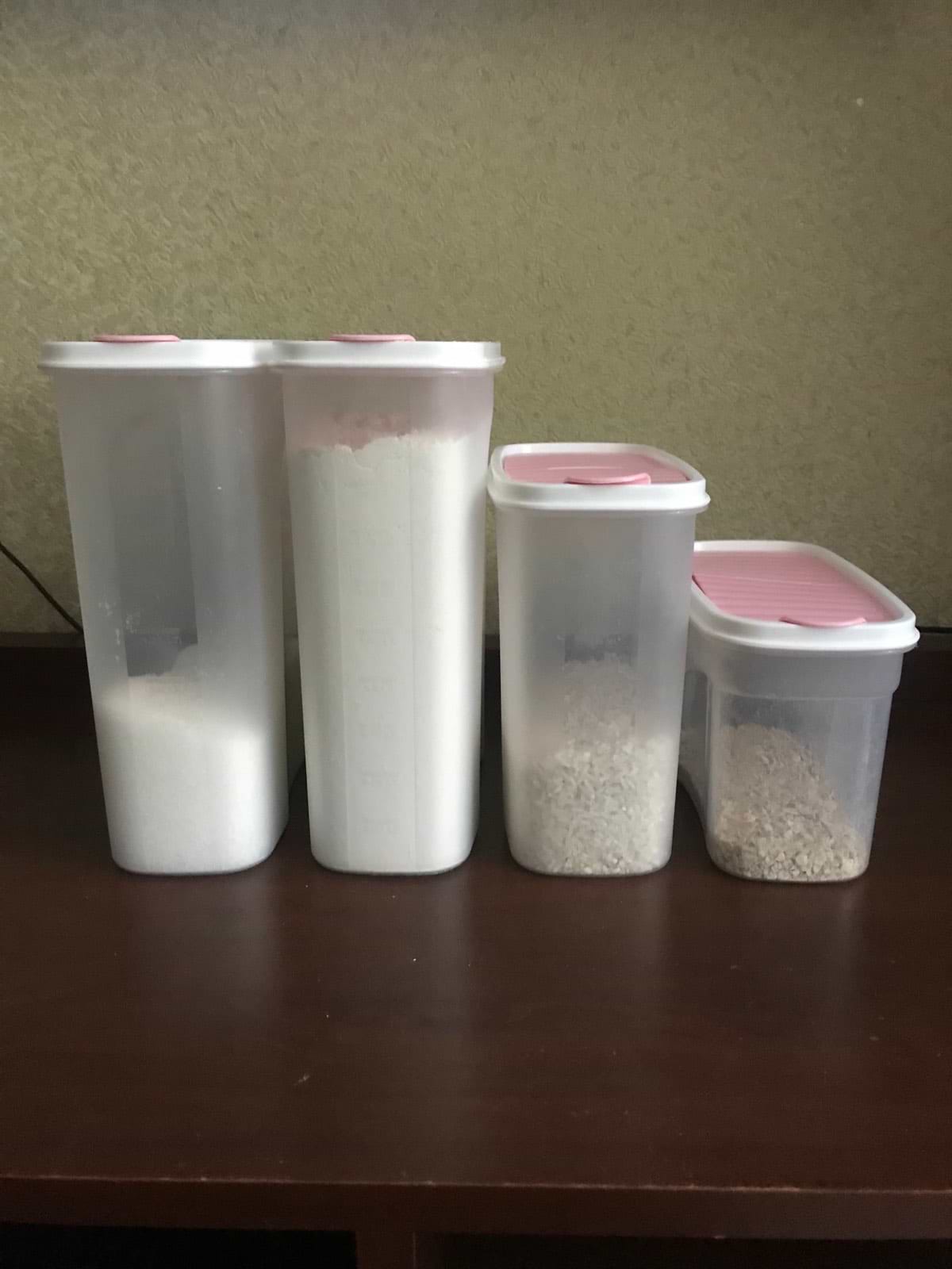 Решила поменять ёмкости для сыпучих продуктов и остановилась на этих. Купила ёмкости объёмом 2,5 л и 1,8 л. Ёмкости удобные, однако из-за заужености к низу занимают немного больше пространства,чем хотелось бы, поэтому чередую обьемы
