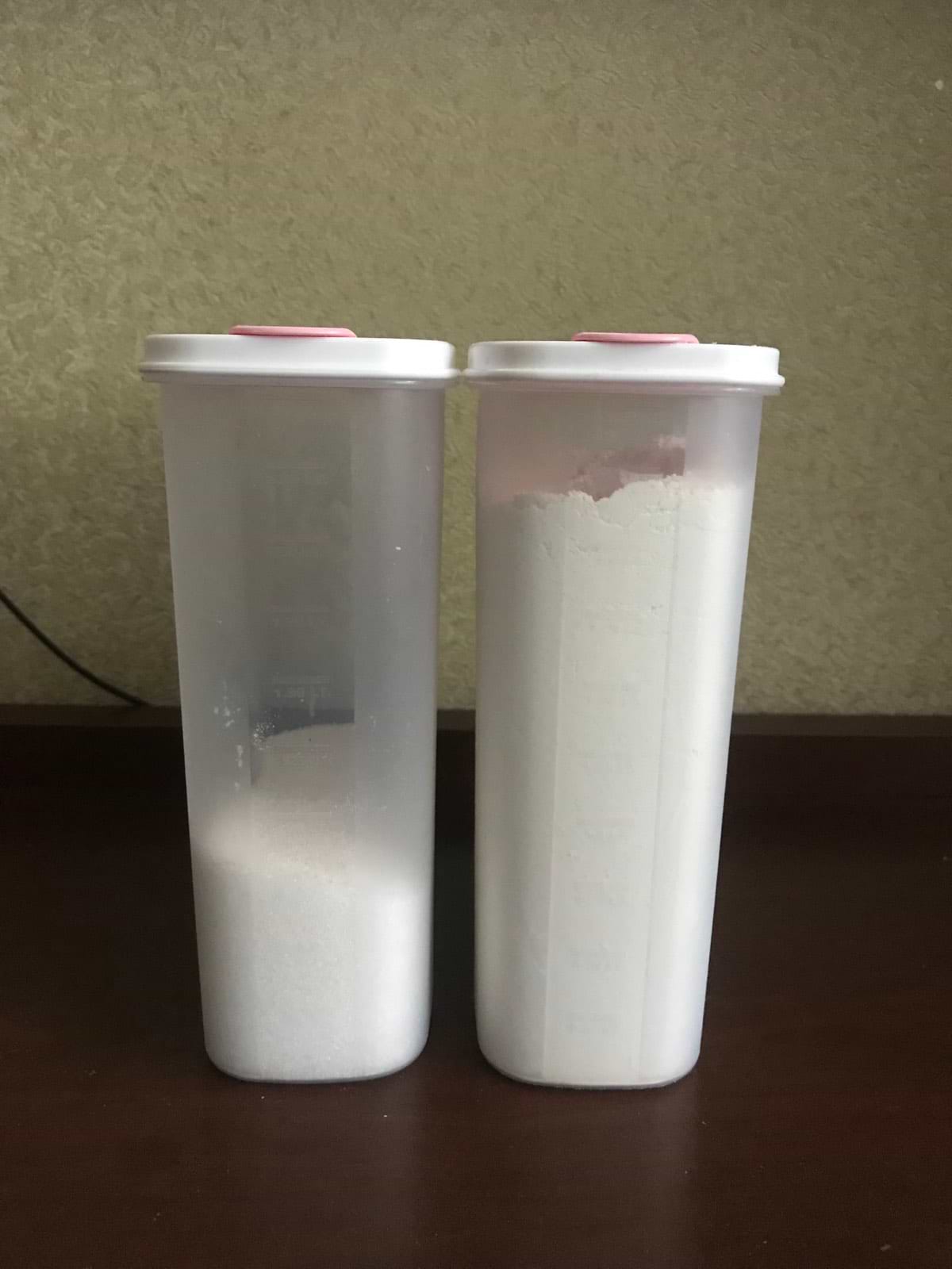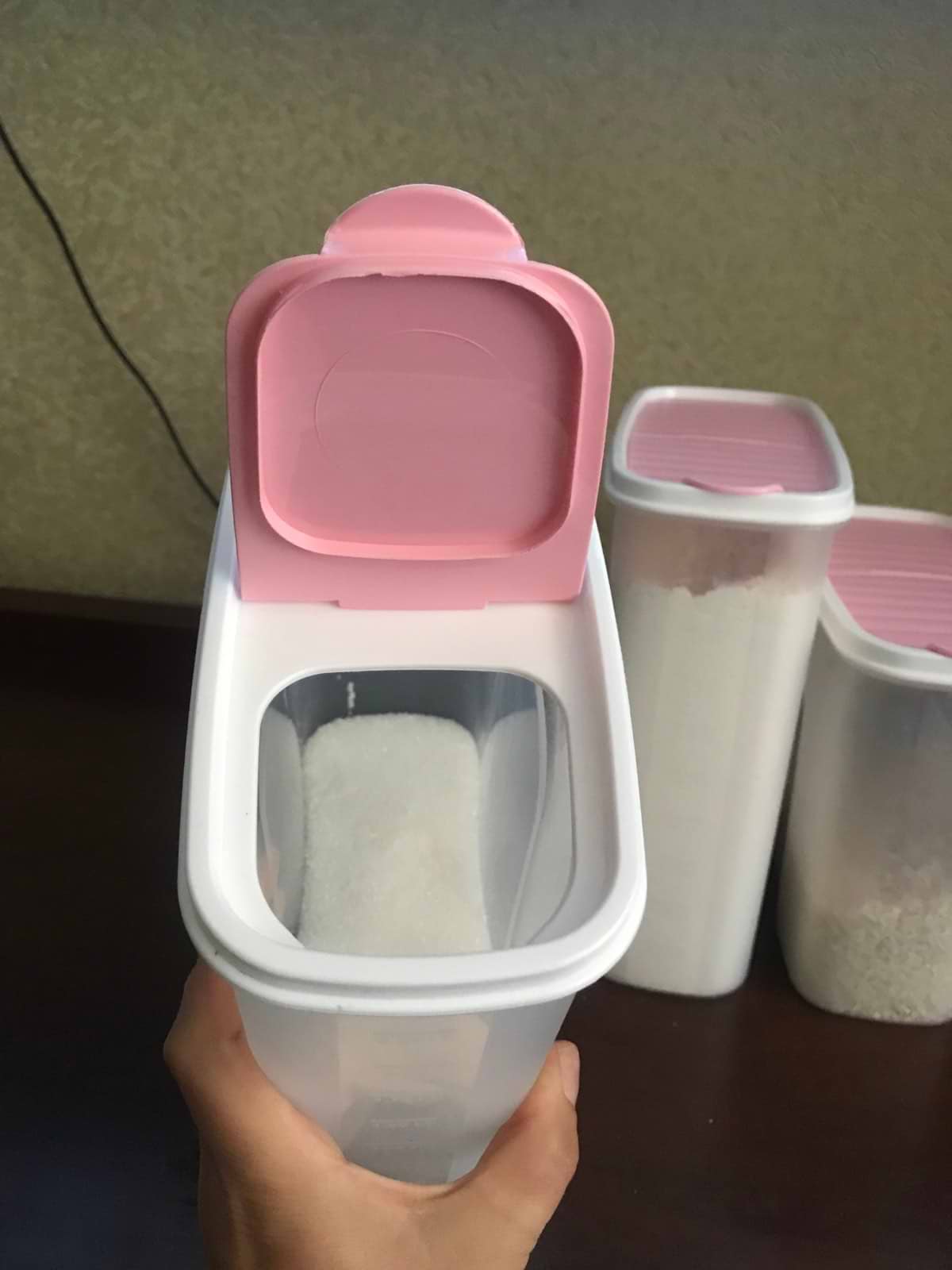 Удобный контейнер, можно не снимать крышку, чтобы засыпать содержимое. И удобно, что емкость узкая, можно поставить несколько в ряд и наверх.