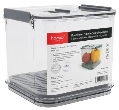 Ємність для зберігання Homax Контейнер для хол. з вент. отвором, піддоном для збереження св. продуктів 2,5 л 17,3 х16, 3х15, 2 см (BR-04)