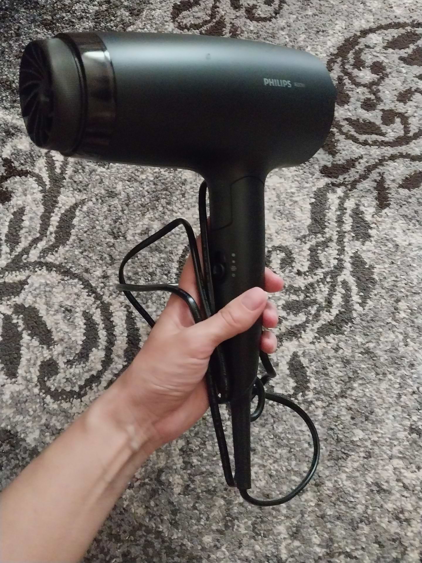 Мне очень понравился фен. Сочетание прохладного и горячего воздуха класс. Мне этого очень не хватало. Быстро сушит. Я в восторге!! Мне нравится, не тяжелый, рука не устаёт держать.