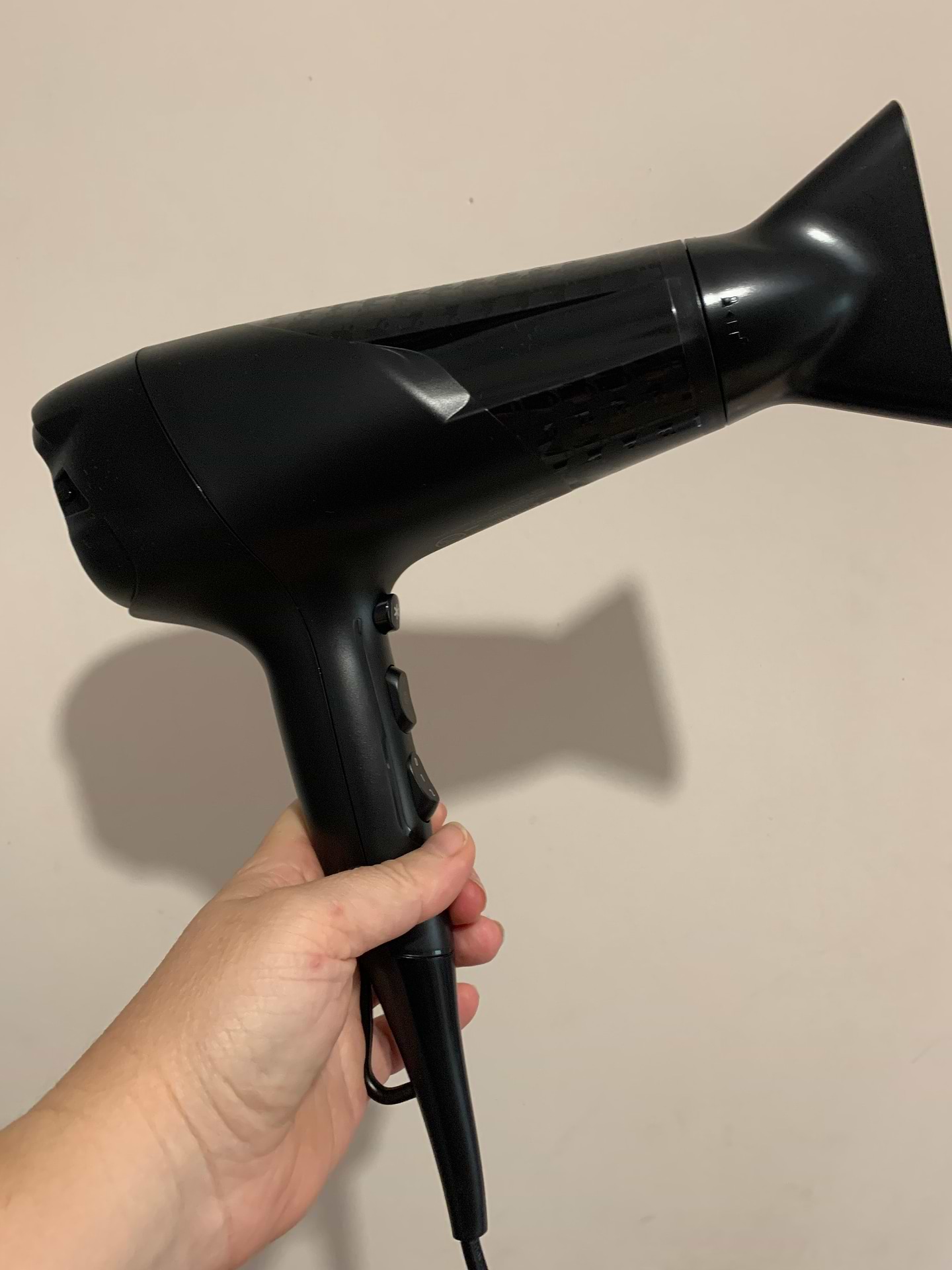 Фен чудовий. Все гармонійно: розмір, розташування тумблеру, перемикача, кнопки холодного обдуву. Вузьке сопло, звісно не таке,як у професійних, але все ж таки й не широке. До речі і дизайн теж привабливий, чорний матовий із полірованими фрагментами. І це все за надрзумні гроші! Десь в коментарях прочитала: "Беріть, не вагайтесь", дякую цьому споживачу й підтримую цю думку)