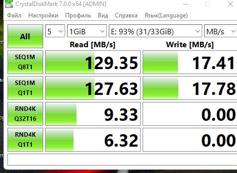 Отличная флешка. Реальная скорость записи флешки (прогнал через H2testw) на запись 30, на чтение 90. За ее цену лучше не найти.